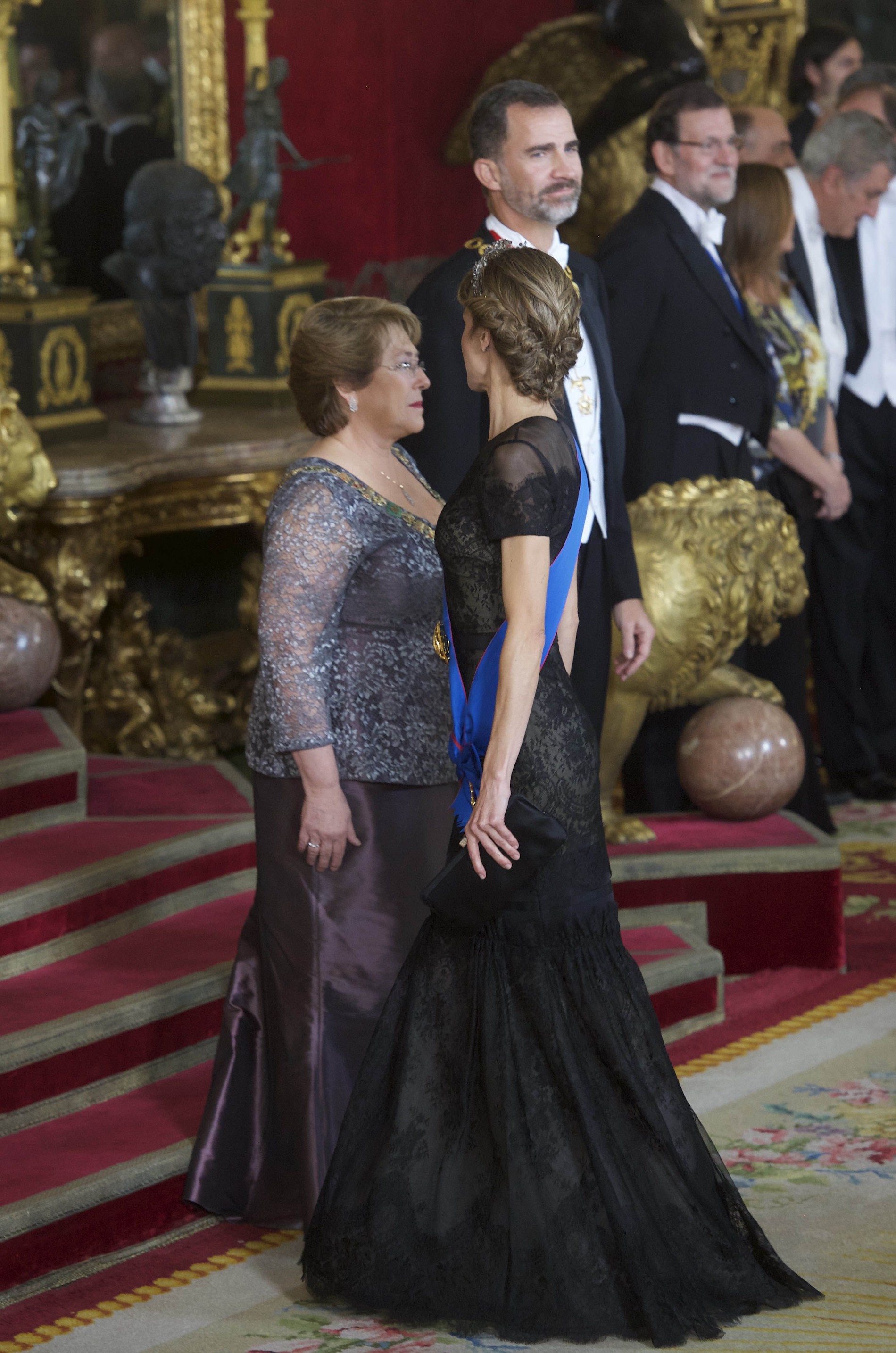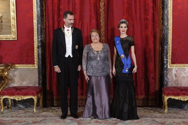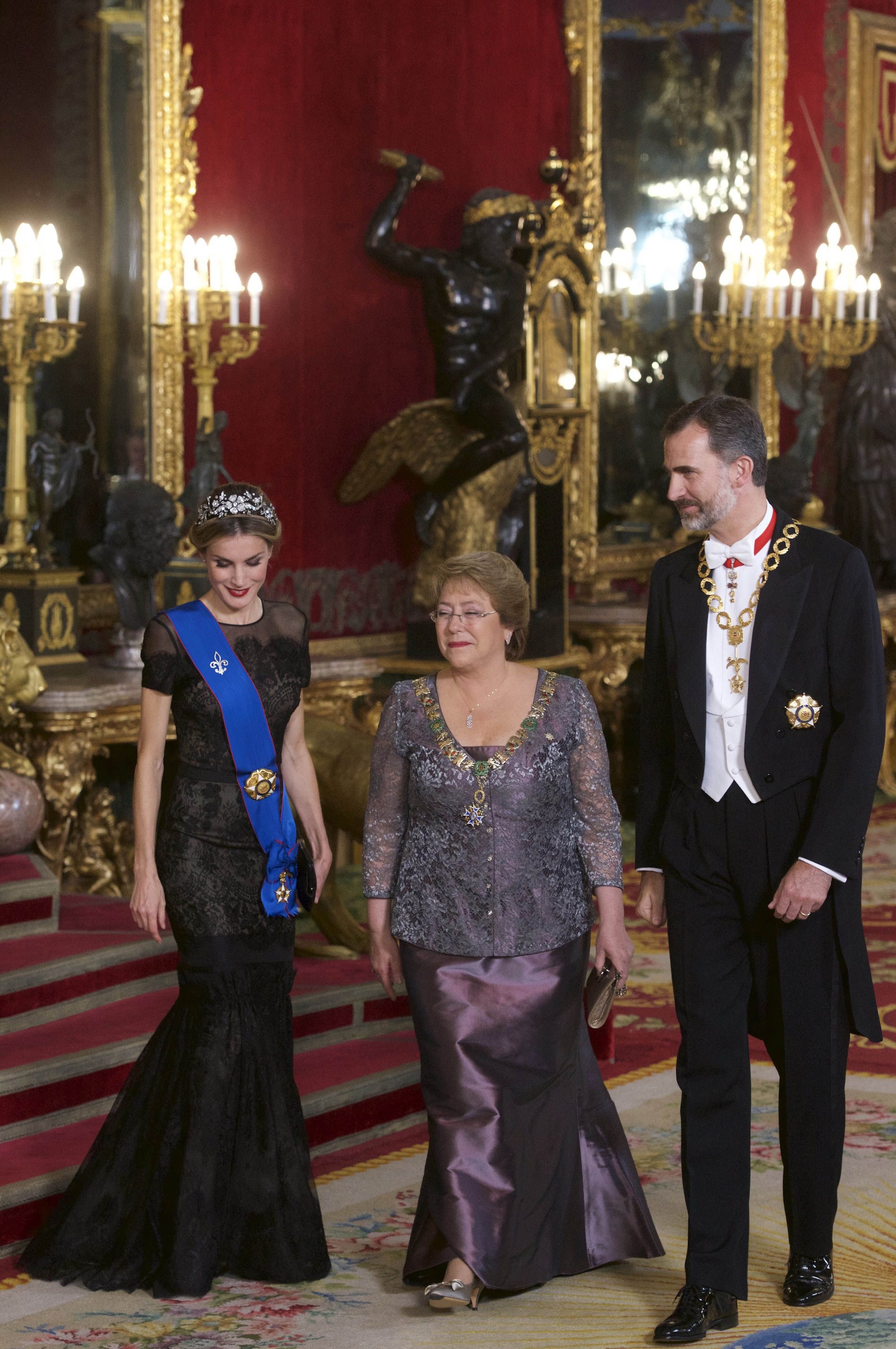 Los reyes de España, Felipe VI y Letizia, tuvieron este miércoles una de las cenas de gala más importantes desde que llegaron al trono: la visita oficial de la presidenta chilena Michelle Bachelet. Esta es la primera vez que ejercen como anfitriones de un mandatario extranjero en el Palacio Real.