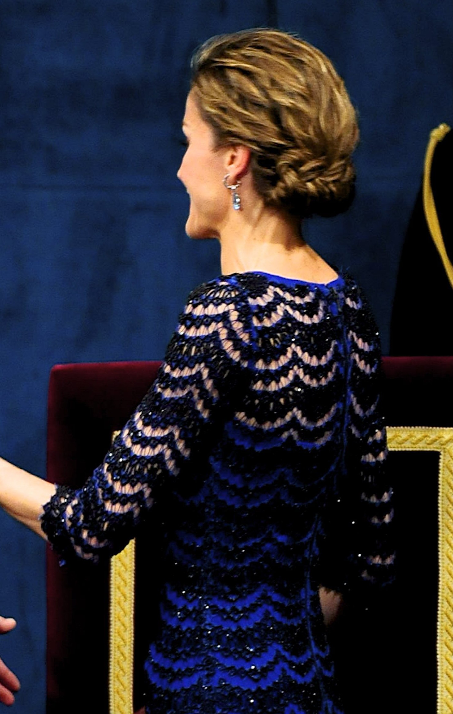Otra imagen de la reina en los Príncipes de Asturias en la que se puede apreciar la parte delantera del recogido.