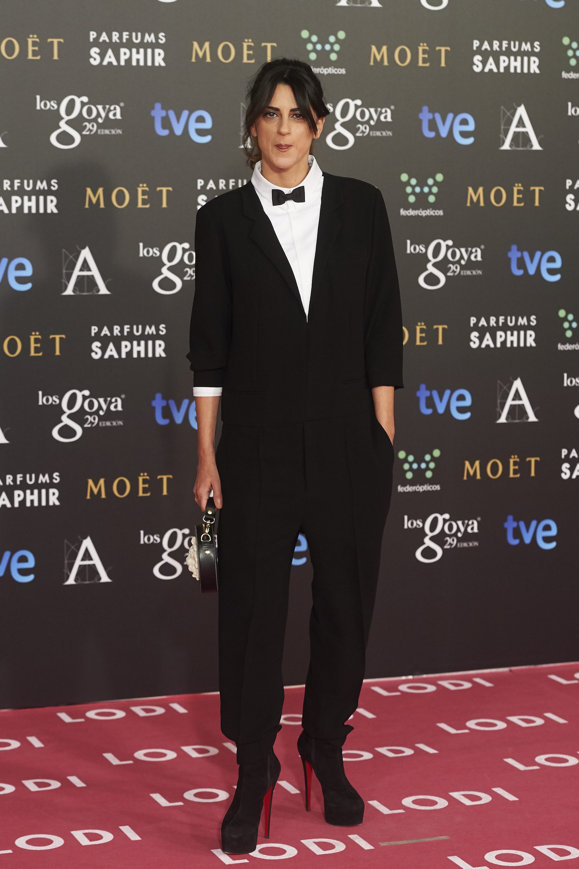 Al igual que Susanna Griso en los premios Antena 3, la directora de Todos están muertos, Beatriz Sanchís, apostó por el esmóquin con pajarita y unos altos zapatos de tacón.