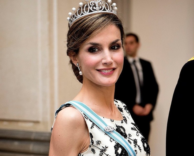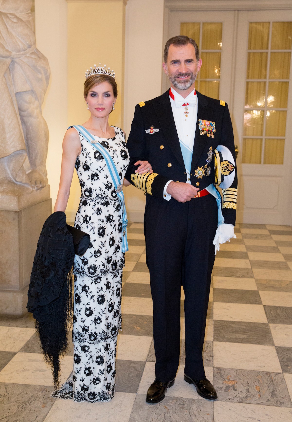 Letizia Ortiz fue una de las mejores de la noche. Este diseño blanco y negro, de Felipe Varela, ha sido muy comentado por dejar ver sus brazos, algo que sale del protocolo. Aún así, a los críticos de moda les ha gustado mucho. También sorprendió porque por primera vez estrenó la tiara " La Ansorena"que le regaló Felipe VI en el 2006.