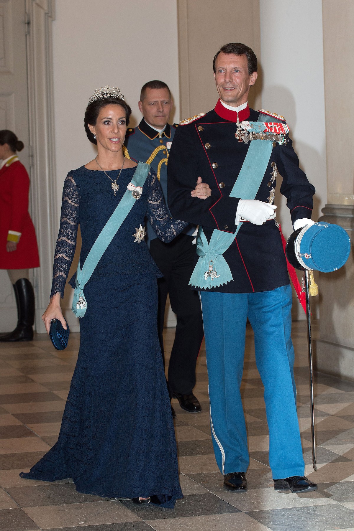 Marie de Dinamarca fue una de las peor vestidas de la noche. Escogio un conjunto simple de dos piezas en color azul marino con encaje que no le favorecía.