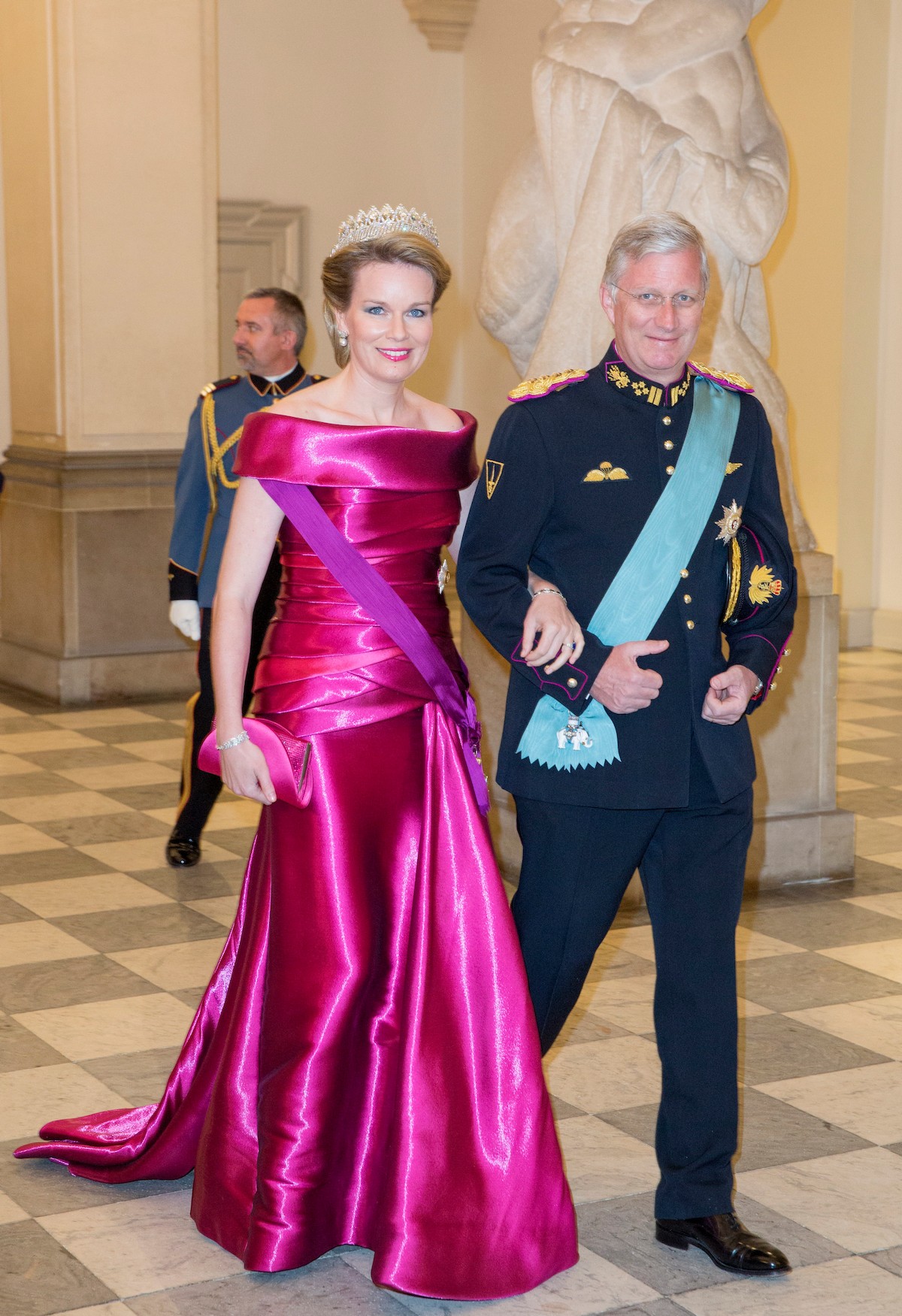 Matilde de Bélgica volvió a llevar el vestido que lució en la boda de Alberto y Charlette de Inglaterra. Tanto el color, el brillo como la forma del modelo no le favorece la figura.