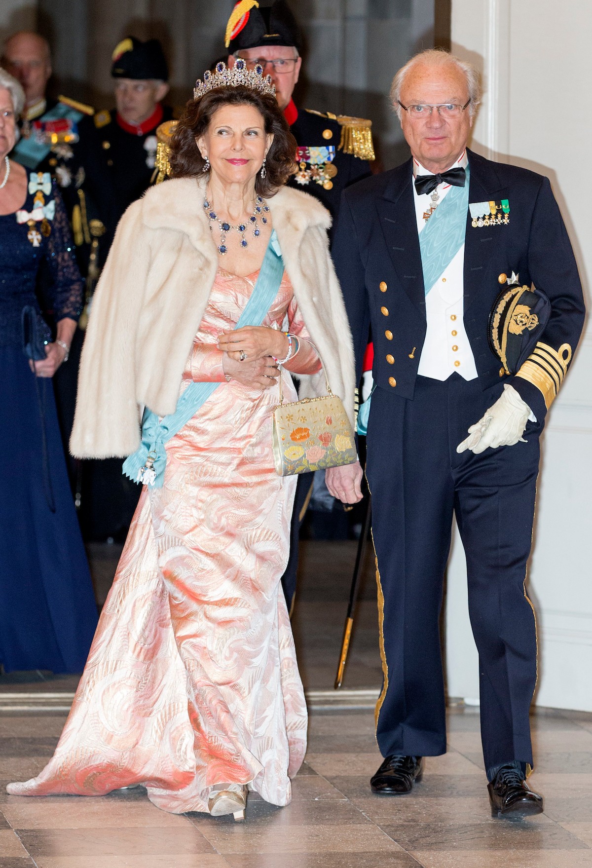 Silvia de Suecia volvió a ponerse el vestido que estrenó en la preboda de su hija Victoria. Desde entonces lo ha llevado en varias ocasiones, aunque no es un conjunto que le quede bien.