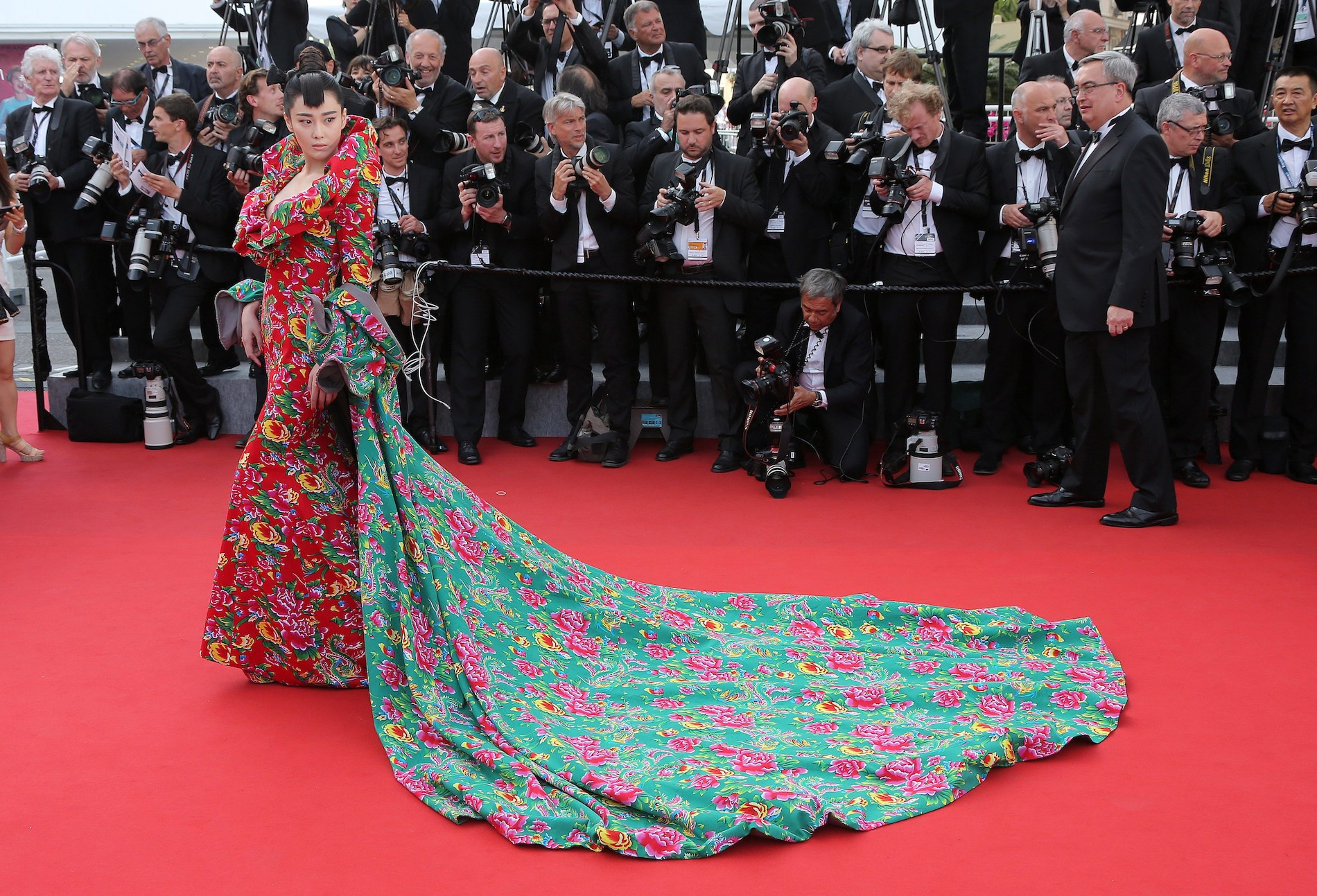 Para la alfombra roja de Cannes, la actriz escogió este vestido amarillo pollo vaporoso, ideal para ir a la playa pero poco apropiado para un evento como este.