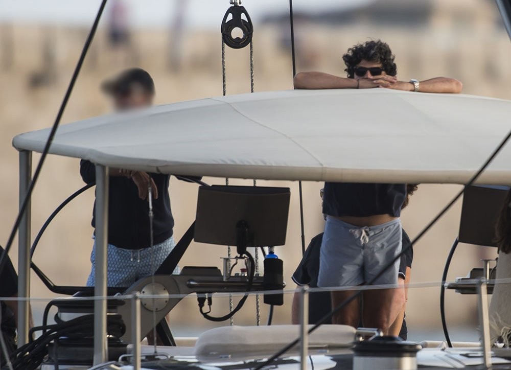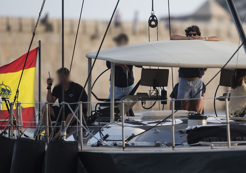 Ya en camiseta y traje de baño, Moragas departe con el resto de la tripulación en la cubierta del yate