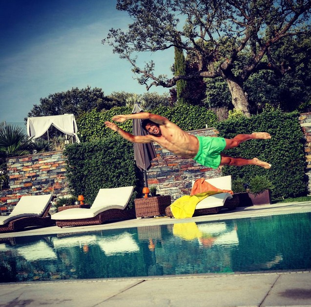 Conocido por no tener ningún reparo en enseñar su cuerpo desnudo por las redes sociales, también mostró a sus seguidores lo feliz que era en la piscina.