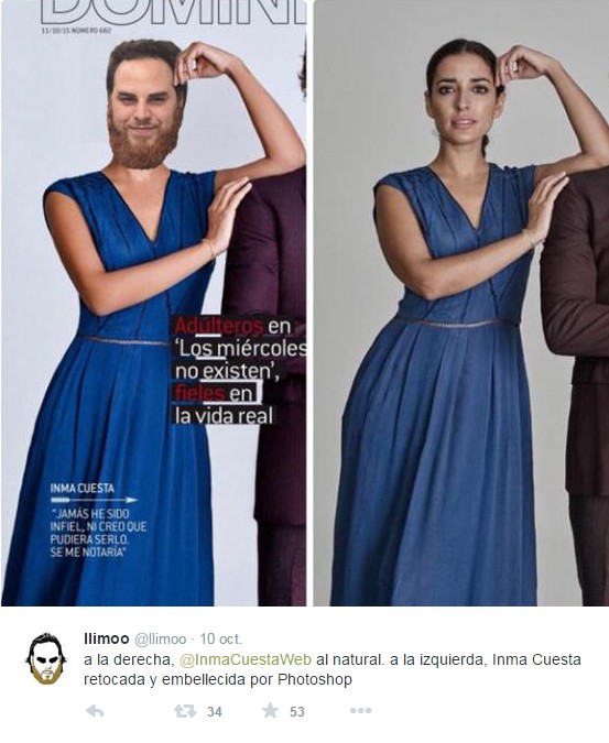 Algunos twiteros se toman con humor la denuncia que hizo Inma Cuesta sobre el uso excesivo del photoshop en las publicaciones.