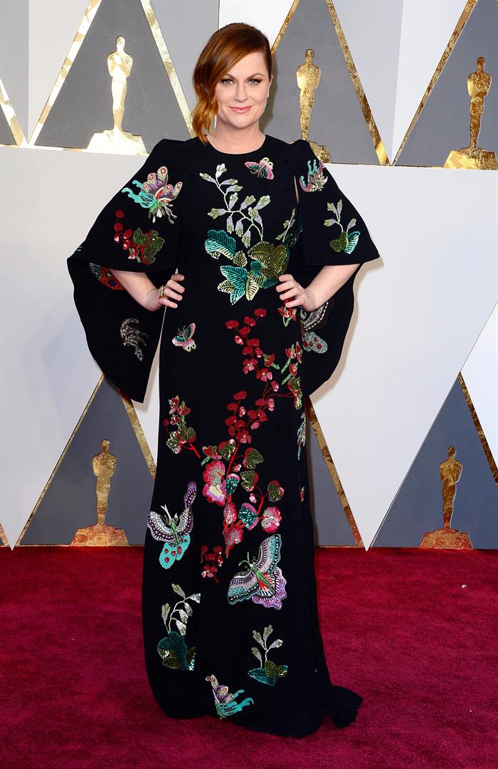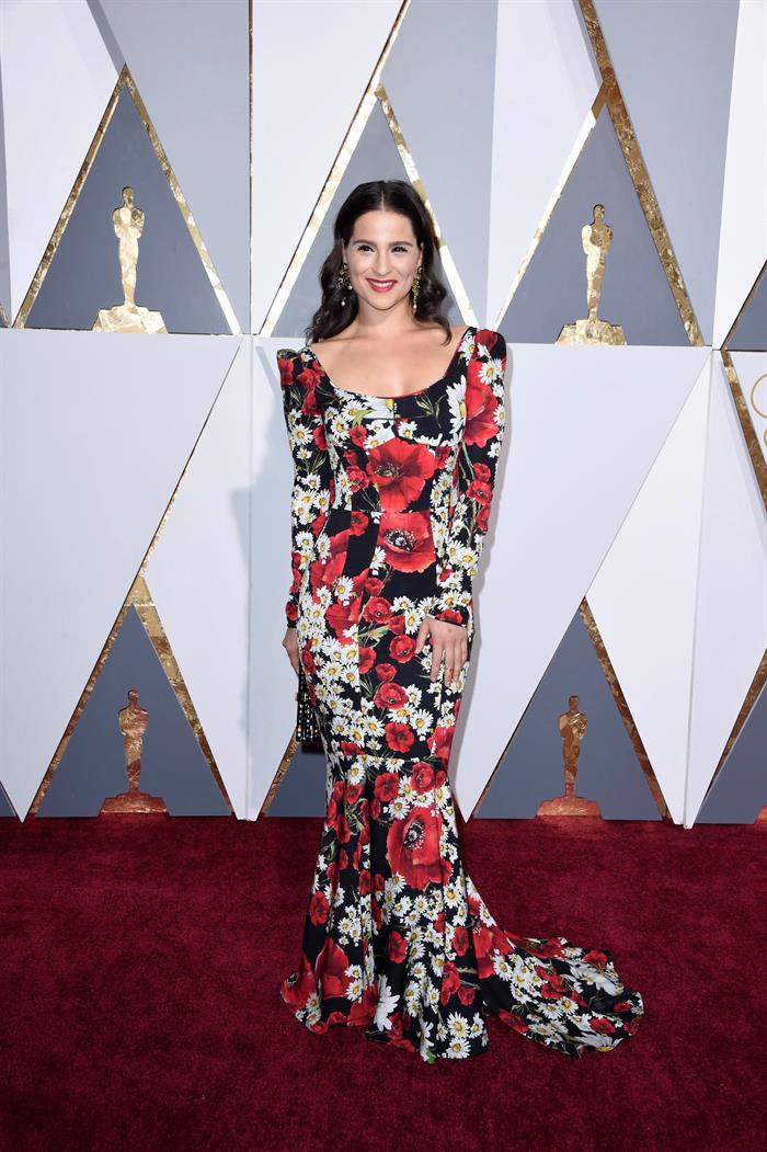 El complicado diseño de la actriz, que parecía inspirado en un vestido flamenco, tenía un llamativo estampado de amapolas. Quizás lo que falle en él simplemente sean las flores, pero lo que está claro es que no es u vestido para lucir en los Oscars.