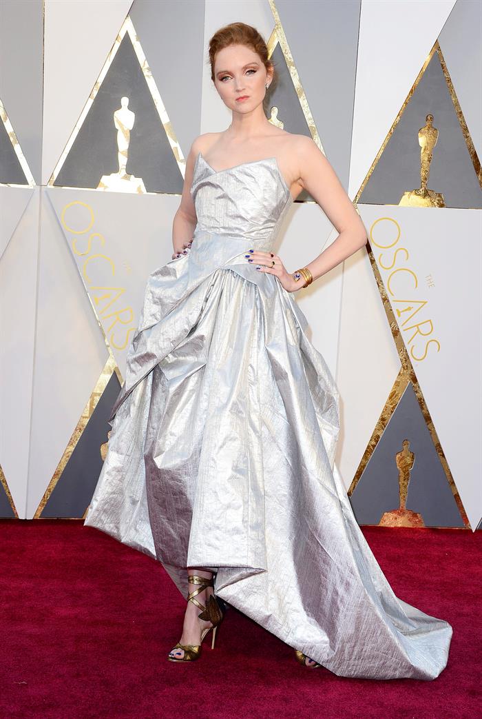 Este outfit no es el normal para una alfombra roja de Los Oscars, de hecho fue de los más feos. Otro de los problemas es que no resalta nada ni le realza la silueta.