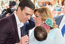 El líder del PSOE estuvo en la caseta de la Cadena Ser con otros cargos socialistas, Juan Marín y Teresa Rodríguez.