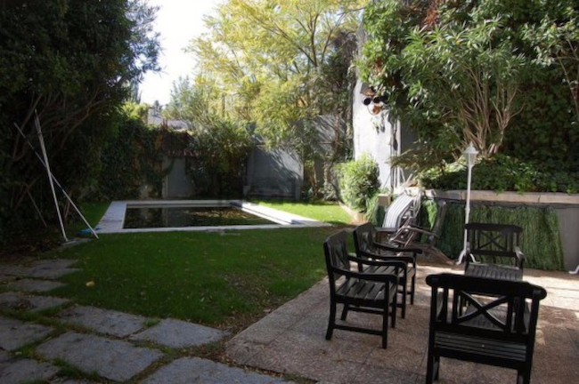 Una casa independiente de 850 metros cuadrados, situado en el barrio de Nueva España (Chamartín) de la capital española. Cuenta con una parcela de 900 metros cuadrados con un gran jardín (en la imagen) y piscina.