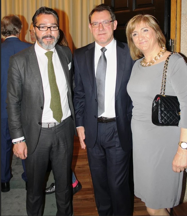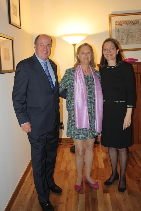 Francisco Pérez de los Cobos, presidente del Tribunal Constitucional, con una trabajadora de su equipo; Manolo Carrasco, Elena Mikhailova y el embajador alemán.