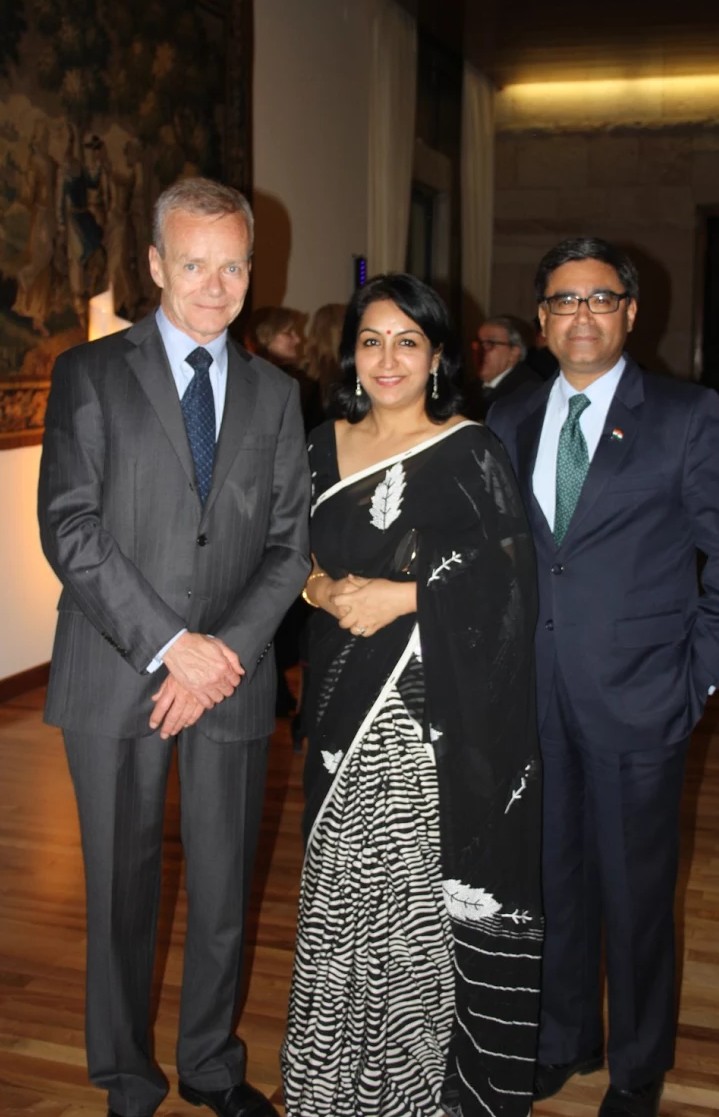 El embajador de la India, con su esposa y el embajador de Bélgica.