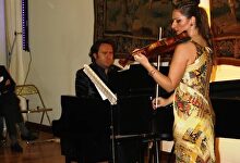 La violinista hispanorusa ha lucido un vestido de Roberto Verino presentado en la Pasarela Internacional de Madrid.