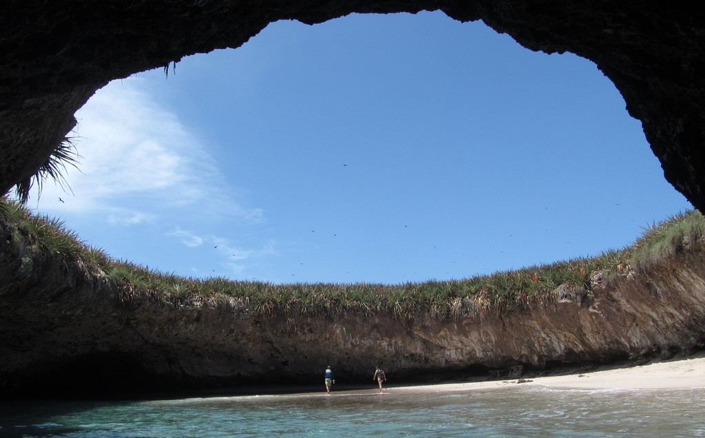 La Playa del Amor de México es accesible gracias a un túnel de 24 metros de longitud que conecta esta peculiar playa con el océano.