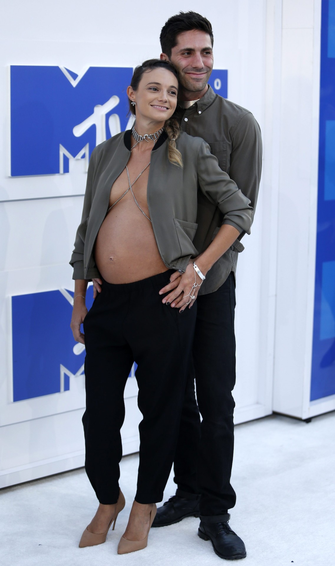 El productor Nev Schulman y su prometida Laura Perlongo aparecieron con modelitos similares pero ella dejó ver su tripita de embarazada.