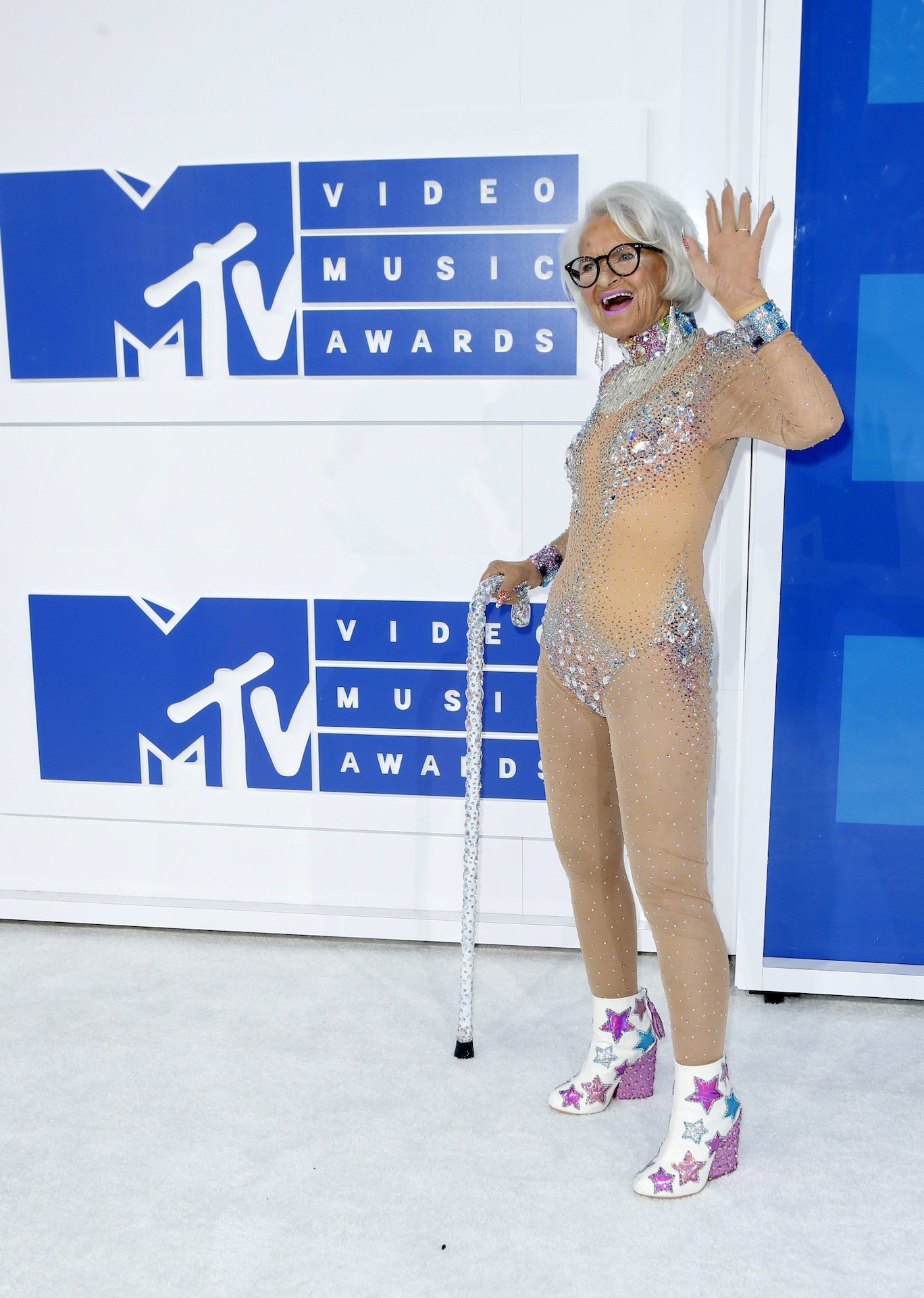A la abuela de Instagram, Baddie Winkle, le gusta llamar la atención con trajes como este de color piel.