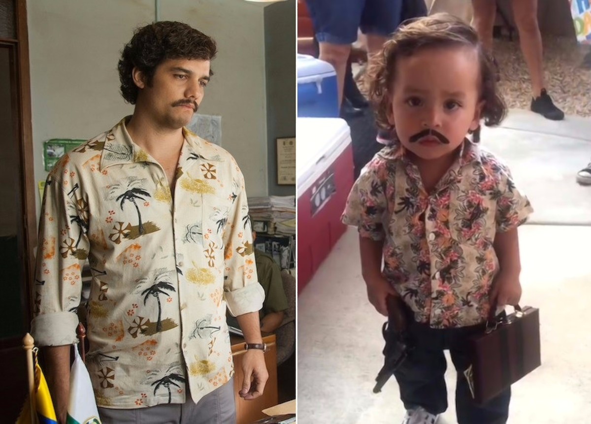 Las series de éxito dan infinidad de ideas a aquellos que optan por disfrazarse en la noche de brujas. Narcos es una de ellas, pero el disfraz es muy criticado por las connotaciones históricas de su protagonista, Pablo Escobar, un villano en la vida real.