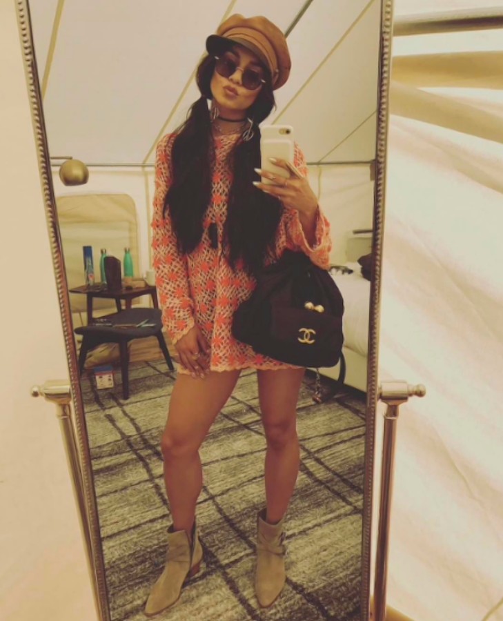 La modelo Alessandra Ambrosio no se pierde una edición del festival, siempre acompañada por sus amigas igual de guapas y bien vestidas. De día, el calor aprieta en el desierto del Valle de Coachella (California), pero cuando bajan las temperaturas hay que taparse, por lo que la top recurrió a este peculiar abrigo estilo nativo americano.