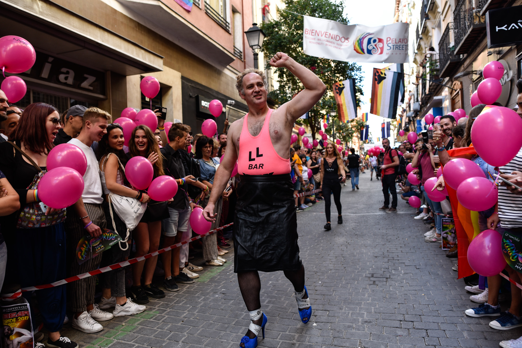 Uno de los eventos más variopintos y recordados de las fiestas del Orgullo en Madrid es la Carrera de Tacones que se celebra en la estrecha calle Pelayo.