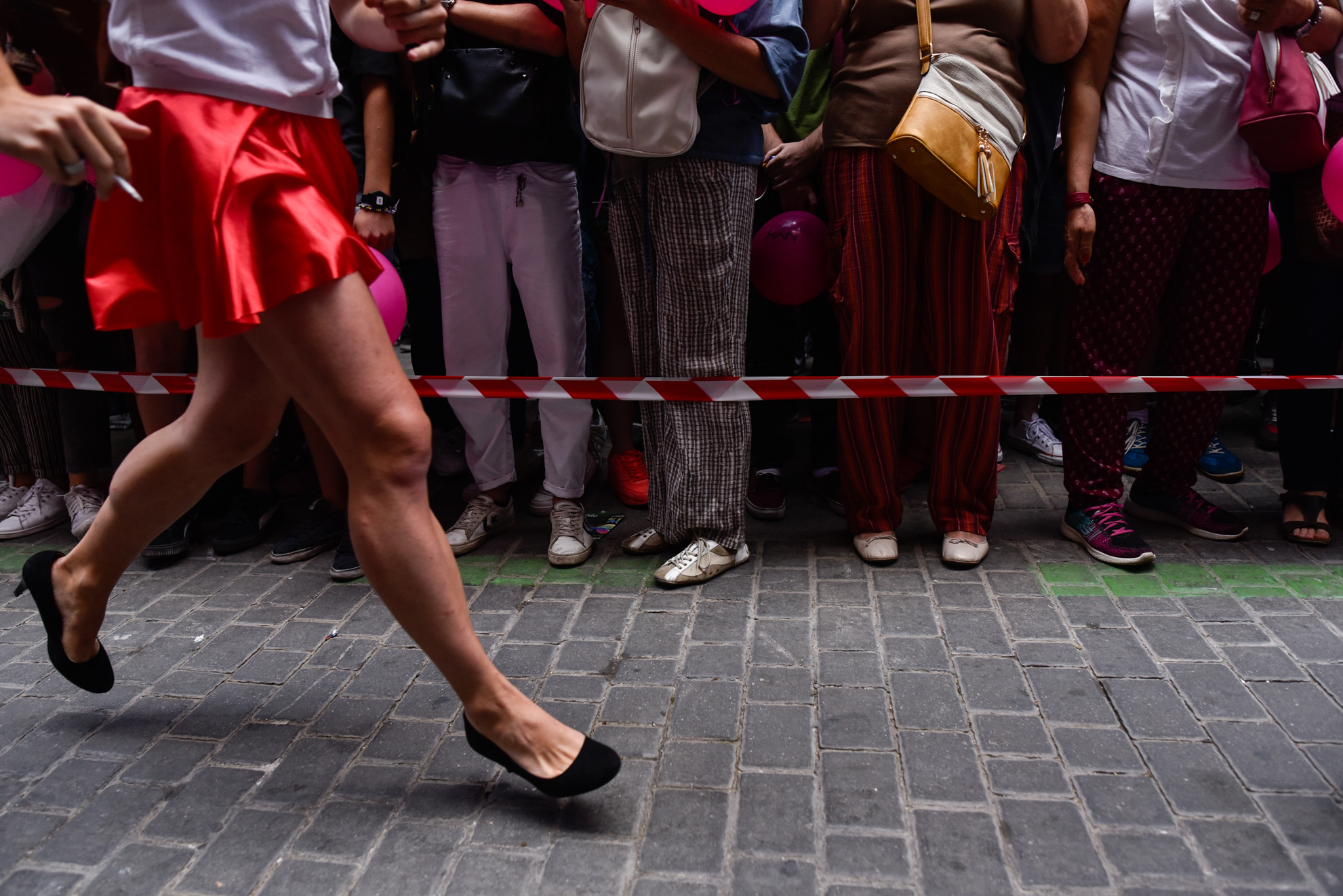 Uno de los eventos más variopintos y recordados de las fiestas del Orgullo en Madrid es la Carrera de Tacones que se celebra en la estrecha calle Pelayo. Centenares de personas no pararon de animar a los corredores, cerca de 40, cada uno de ellos con ganas de ser el flamante vencedor, aunque en este caso, lo de participar si fue lo más importante y divertido.