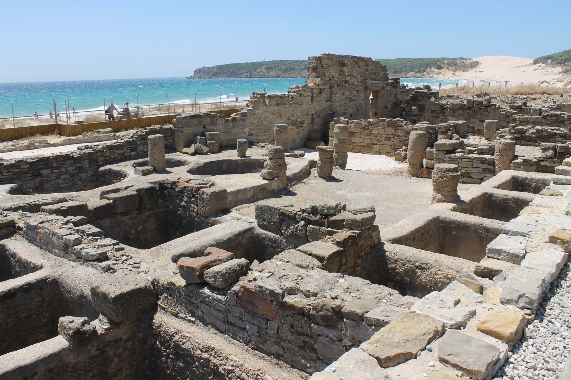 El conjunto en Tarifa es una ciudad-factoría romana que, debido a su excepcional estado, compone una de las mejores muestras del urbanismo romano. El estudio de sus restos muestra su origen en el siglo II a. C y parece que estaba muy relacionada con el comercio con el norte de África. Un gran maremoto arrasó gran parte de la ciudad en el siglo II d.C. Algo que sigue en uso a día de hoy es su teatro, donde puedes ver tanto espectáculos de flamenco como conciertos o teatro clásico.