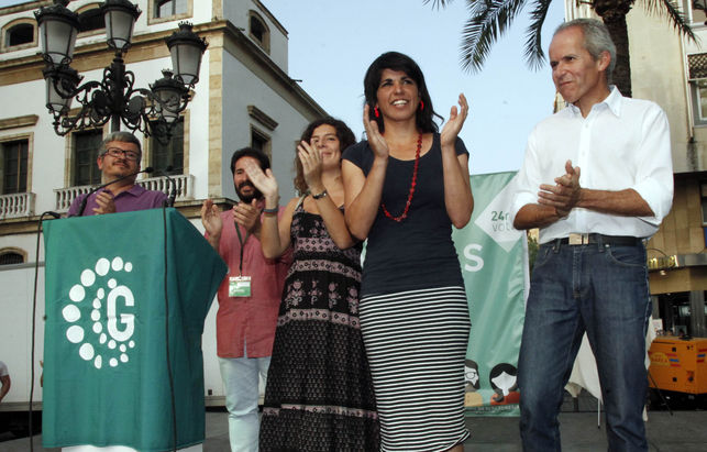Teresa Rodríguez, junto a Moreno Bonilla, en el homenaje a Blas Infante