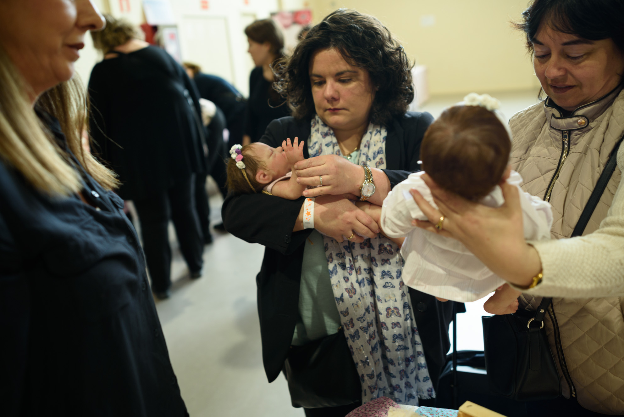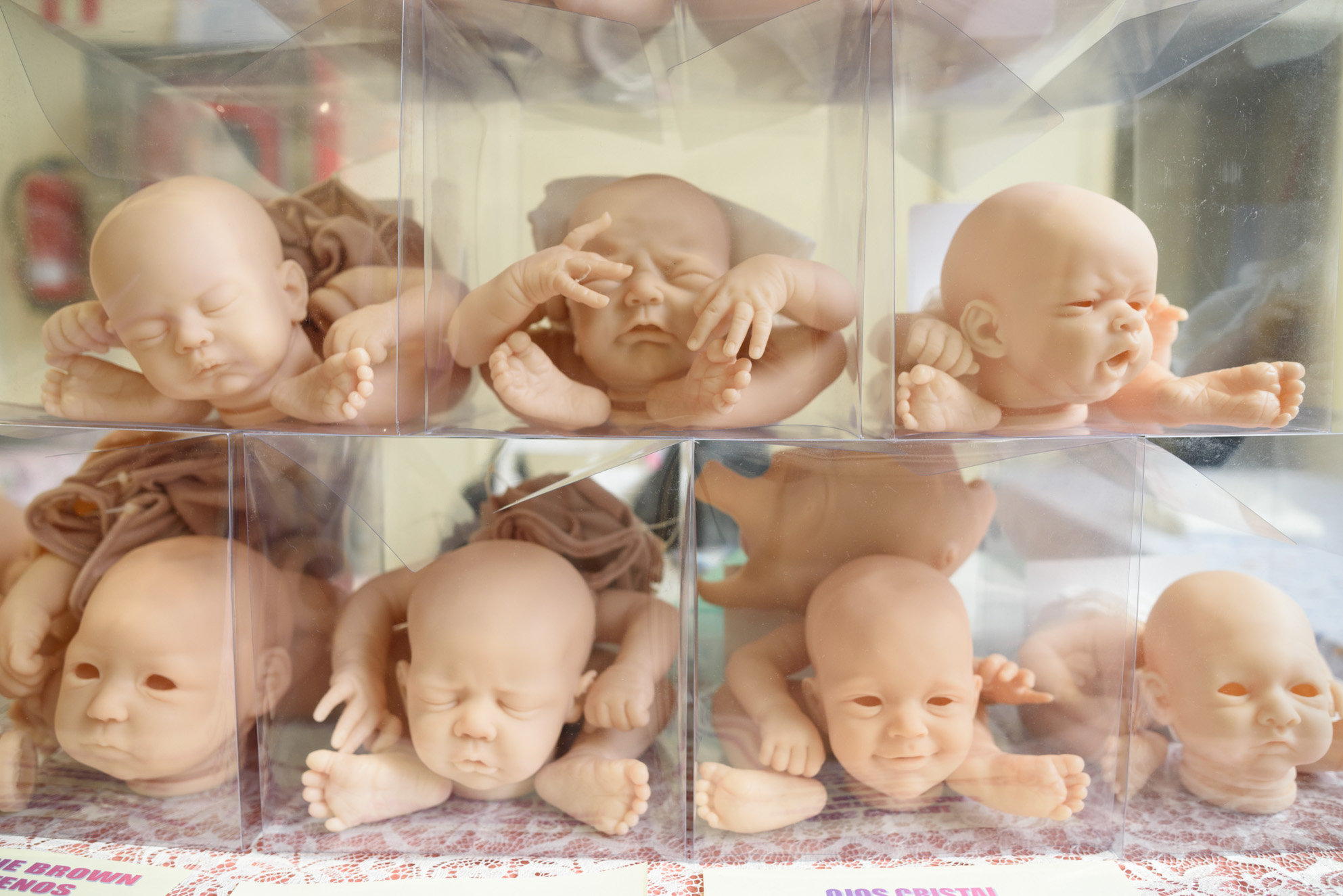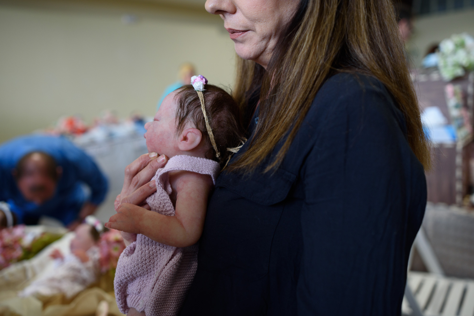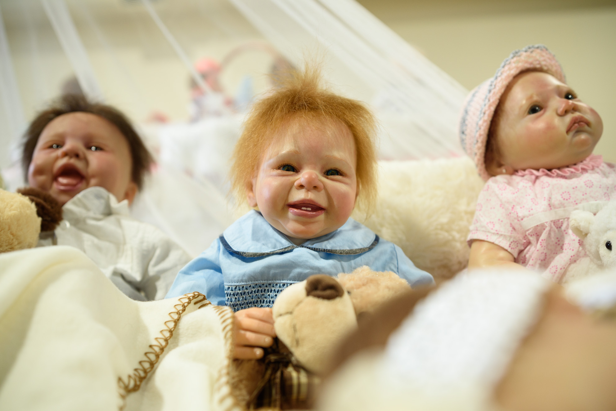 Según los organizadores los reborn “son muñecos pero el público los confunde con bebés reales ya que imitan cada vena, cada cabello y cada gesto de un recién nacido”.