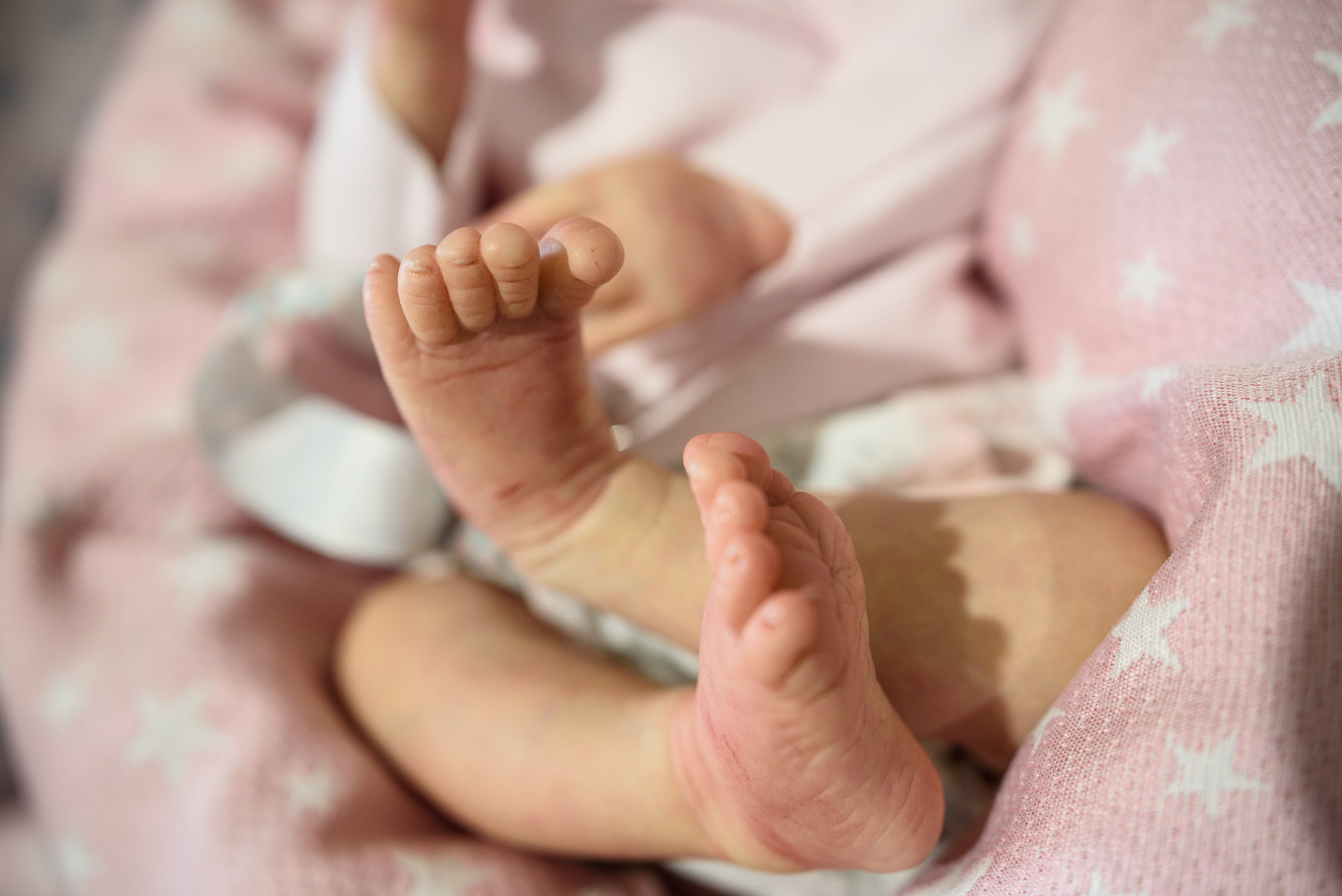 El detalle de los pies de uno de los muñecos bebé reborn. Su realismo es impresionante.