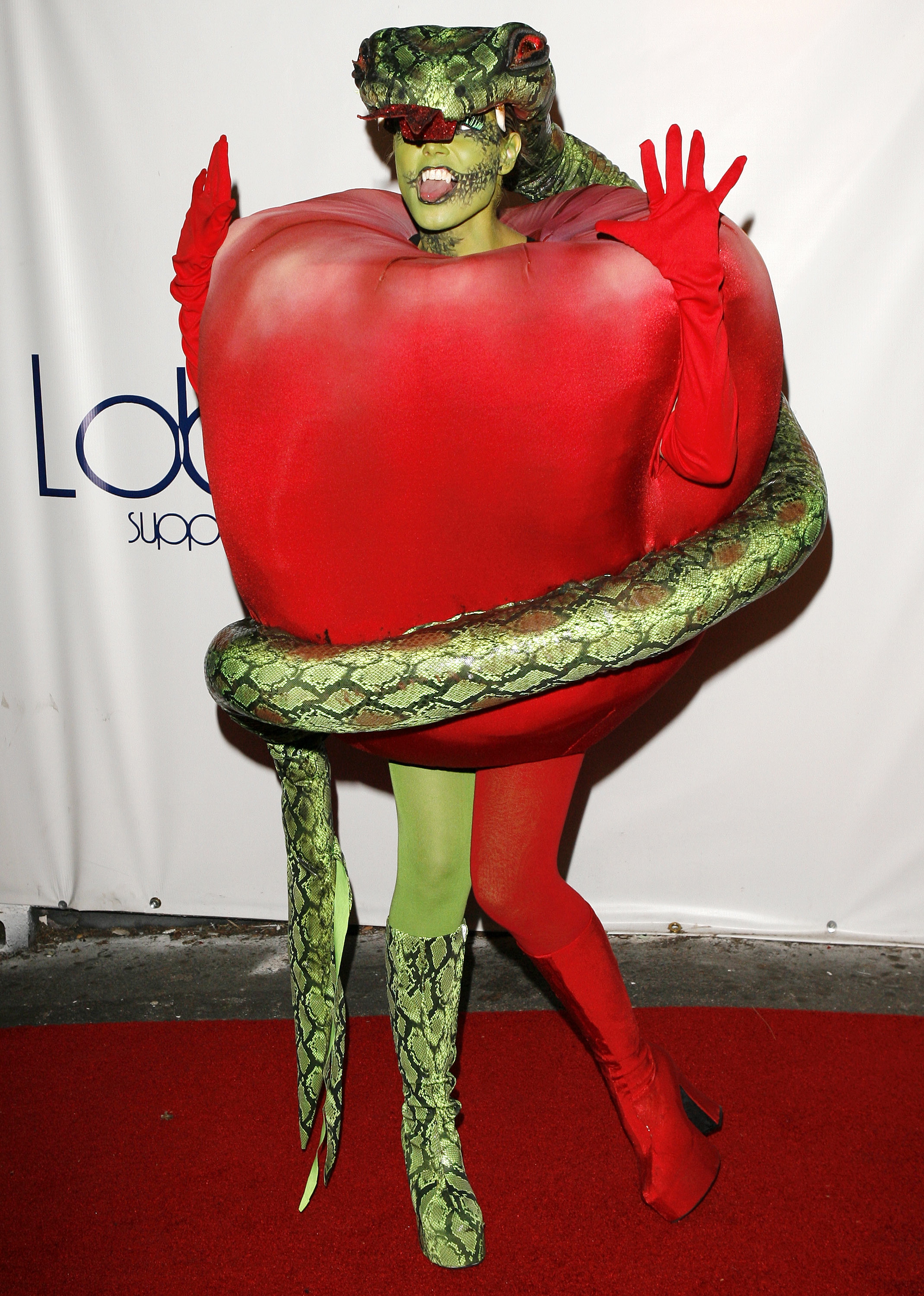 En 2006 disimuló su embarazo disfrazándose de la manzana prohibida que comió Eva. Lo más original, la serpiente que comenzaba en su cabeza y terminaba en su pie derecho.