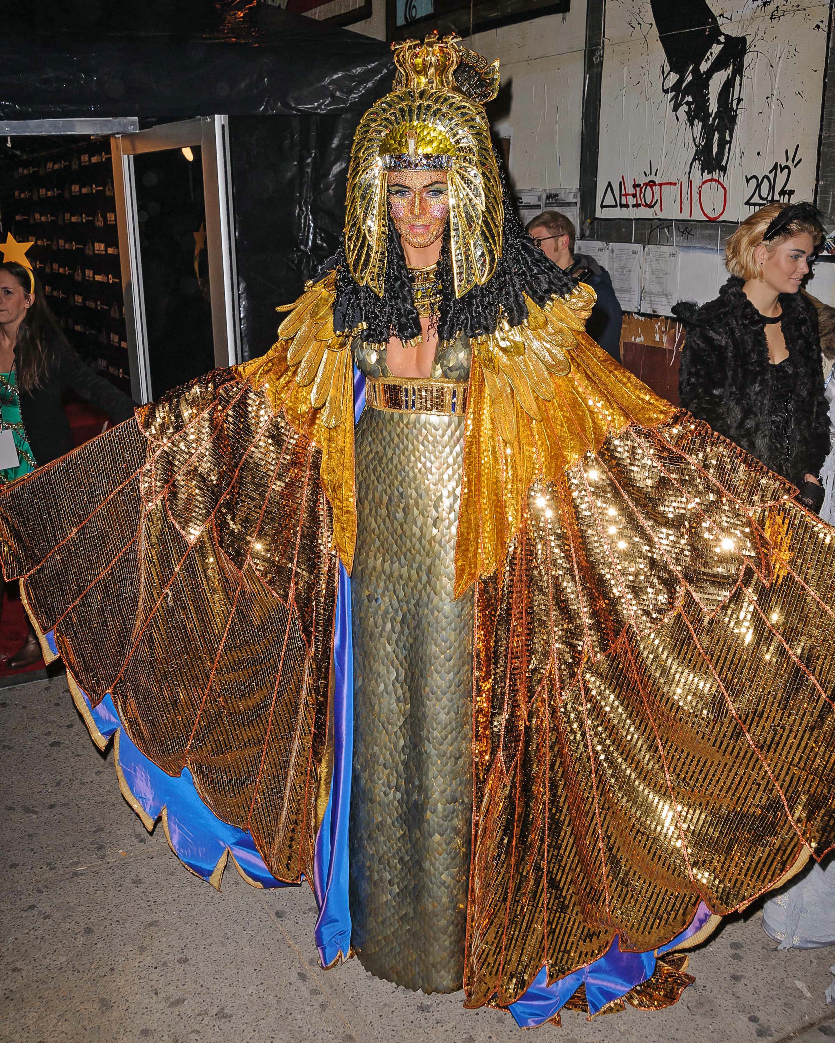 En 2012, Klum canceló su mítica fiesta por respeto a las víctimas del huracán Sandy, que solo en Estados Unidos dejó 88 muertos. La modelo lució el disfraz que tenía pensado para Halloween en una fiesta de Navidad, un impresionante atuendo de Cleopatra que no debía ser nada cómodo. Eso sí, brillaba por todas partes, hasta el maquillaje de su cara.