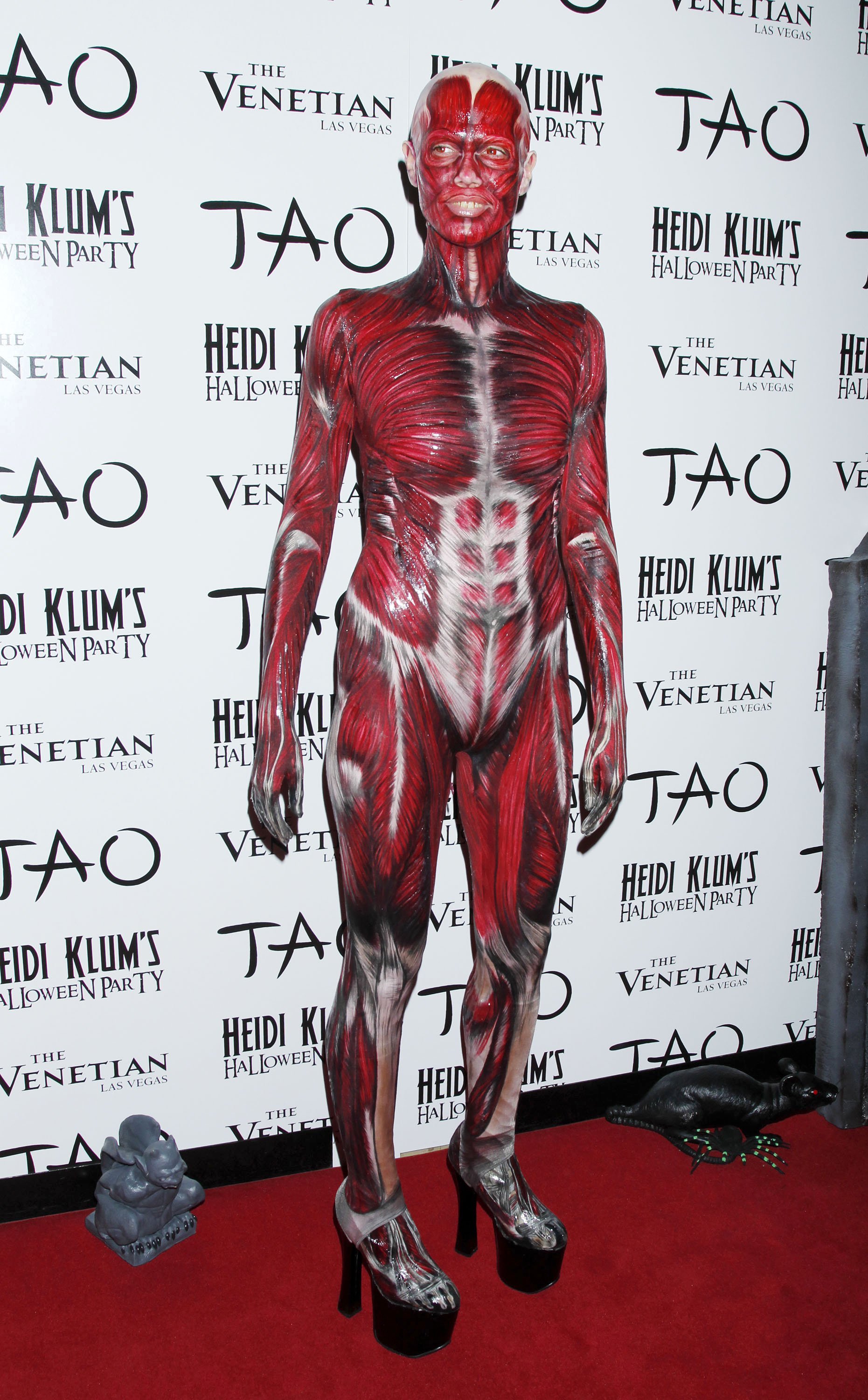 El segundo disfraz fue uno de los más terroríficos que se recuerdan de su fiesta hasta la fecha. La modelo apareció enseñando todos los músculos de su cuerpo, como si se hubiera quitado la piel. Aquel disfraz le llevó horas interminables de maquillaje.