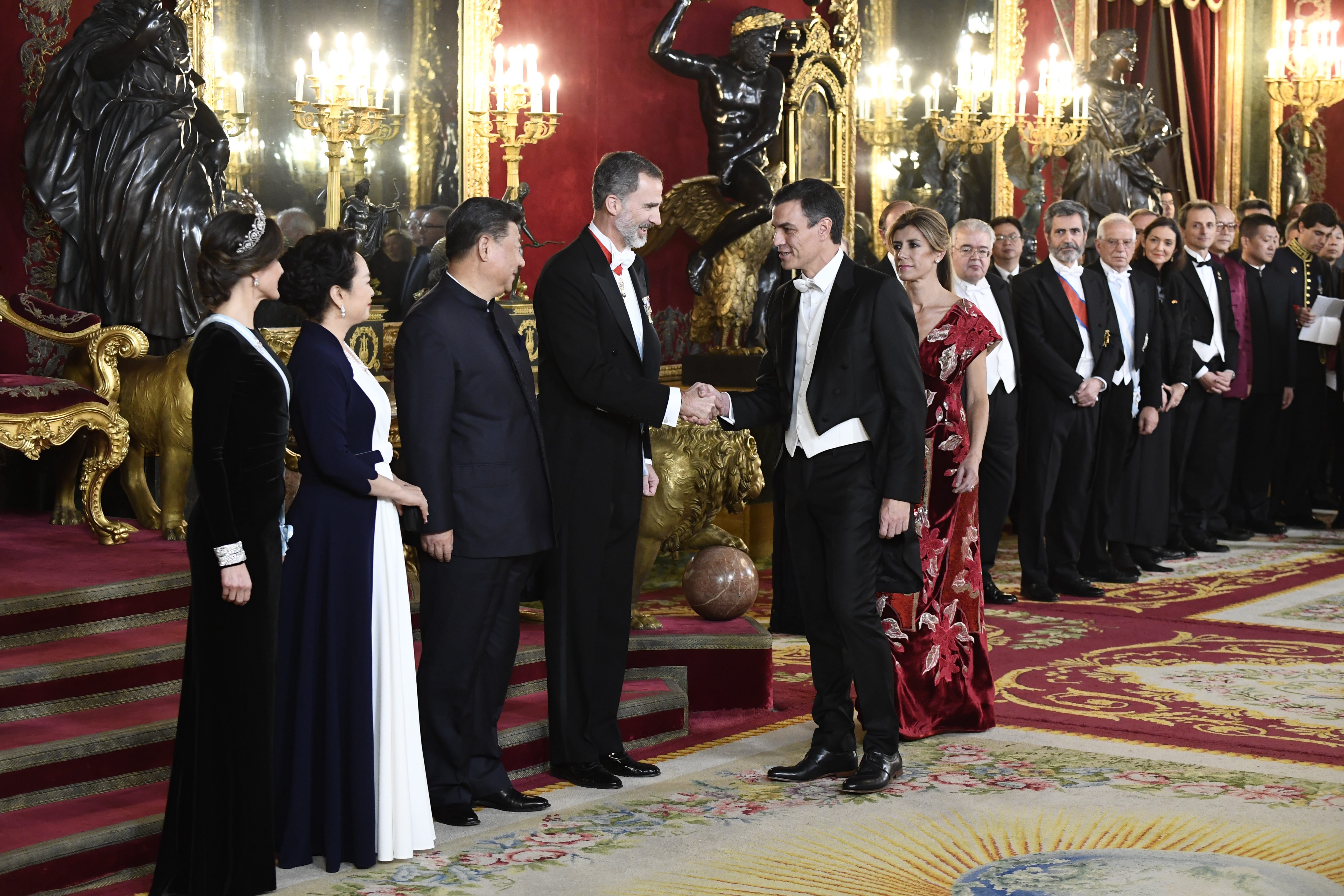 Los Reyes ofrecieron en el Palacio Real la cena de gala en honor al presidente chino Xi Jinping y su esposa Peng Liyuan.