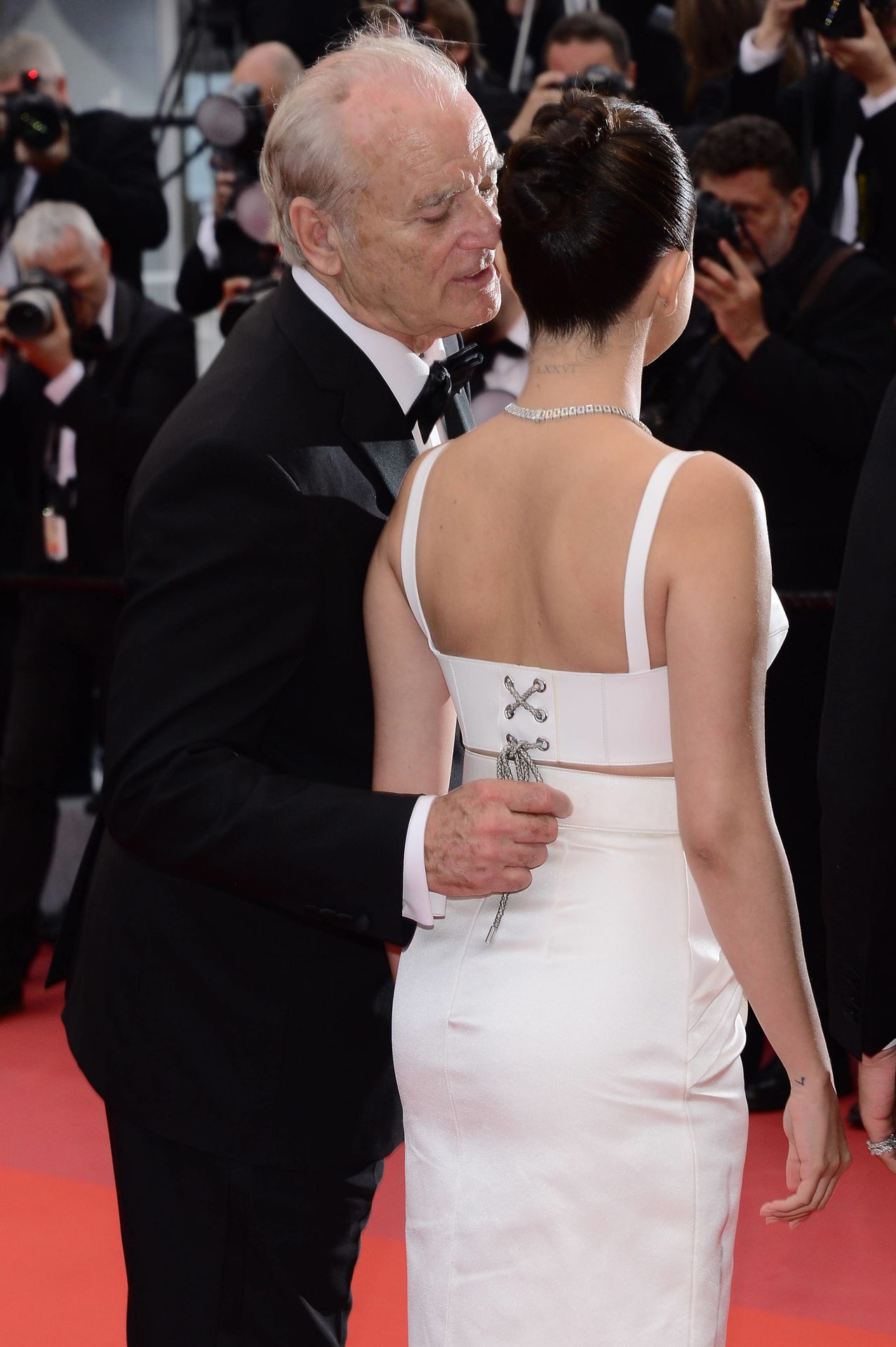 Durante el posado ante los fotógrafos, demostró gran sintonía y buen humor con Bill Murray, compañero de reparto en la cinta.