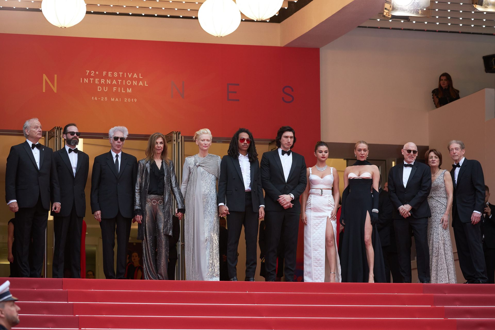 El director de la película Jim Jarmusch acompañado del reparto: Bill Murray, Sara Driver, Tilda Swinton, Luka Sabbat, Adam Driver, Selena Gomez y Chloe Sevigny.