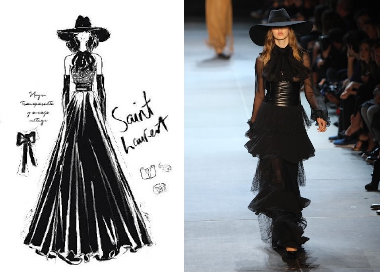 El Grand Palais de París acogió el desfile de la firma francesa Saint Laurent (antes Yves Saint Laurent) con el diseñador Hedi Slimane al mando, casa que abandonó en 2016. Aquella colección con inspiración en los años 70 llamó la atención de Hess. El vestido "era, como poco, espectacular".