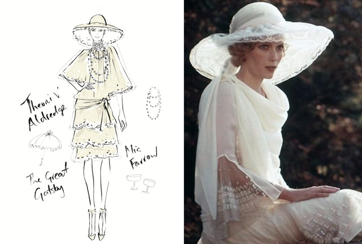 Cuenta la autora una anécdota sobre el vestuario que diseñó Theoni V. Aldredge para El gran Gatsby (1974). Tan solo tuvo 15 días para elaborar los delicados vestidos que lució Mia Farrow en su papel de la glamurosa pero egocéntrica Daisy Buchanan.