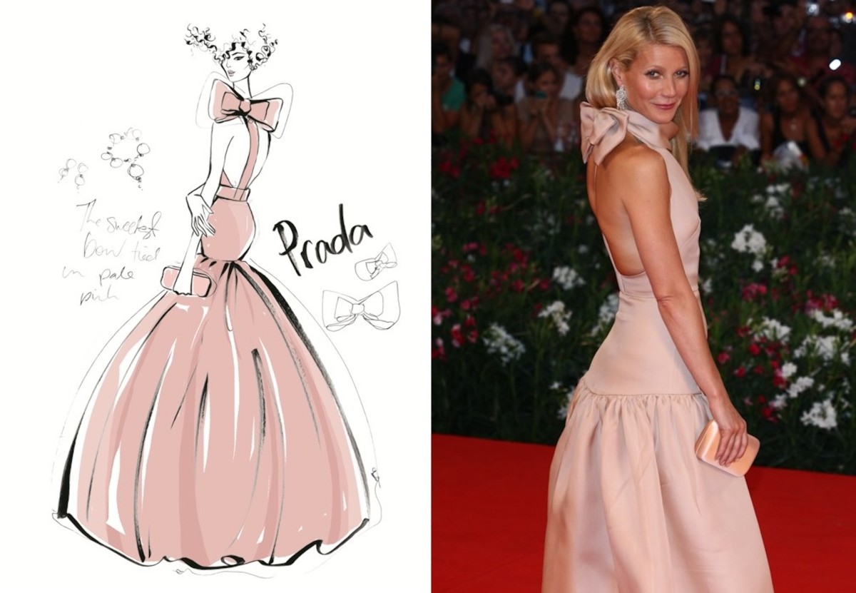 Apunta Hess que "Miuccia Prada se considera la diseñadora de las mujeres que piensan" y la actriz Gwyneth Paltrow debe formar parte del grupo, ya que su relación la casa de moda es larga. En 2011 lució un vestido de color rosa con lazada de organza en la nuca para el Festival Internacional de Cine de Venecia de 2011. En pocas ciudades como en la italiana se respiran aires de Hollywood.