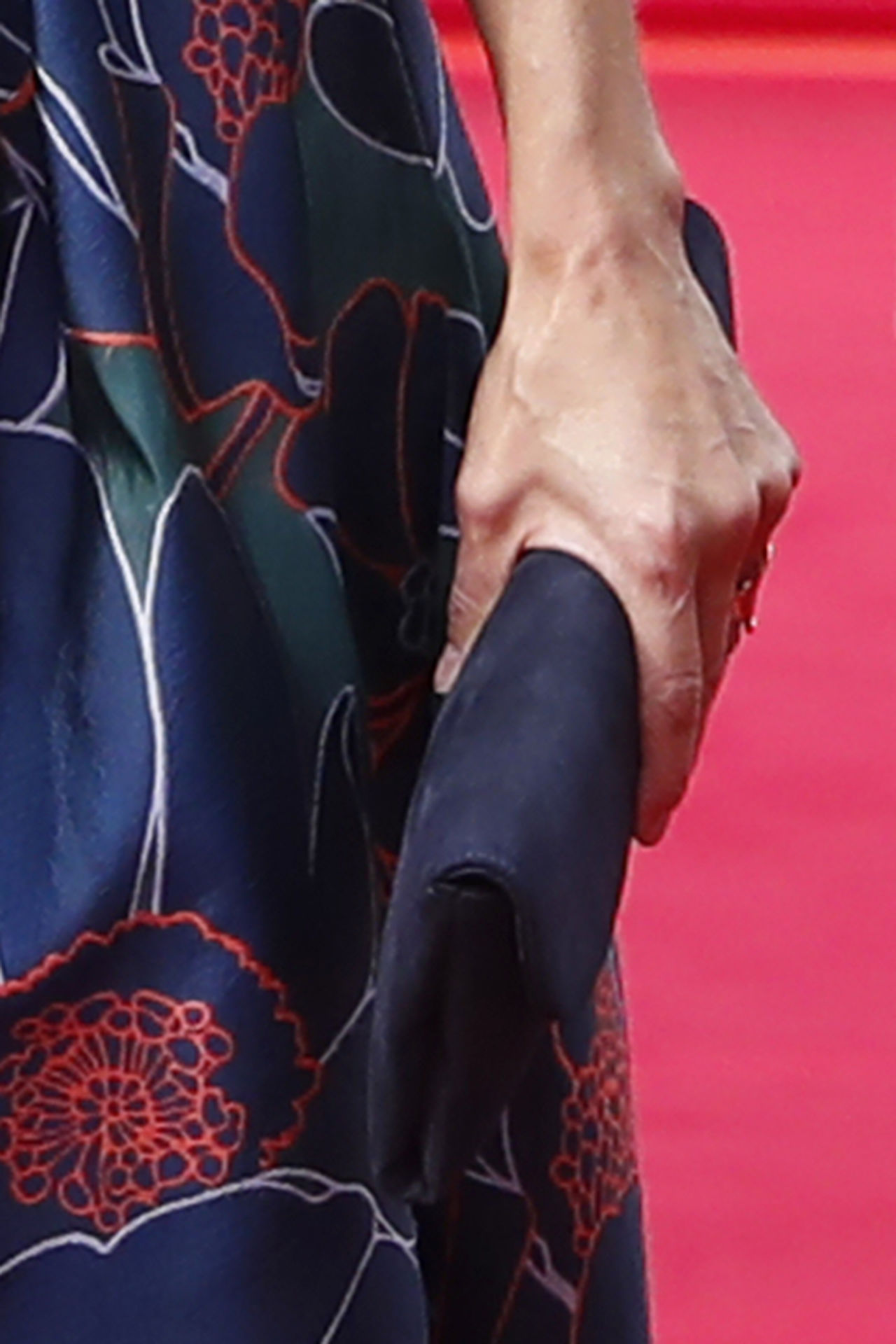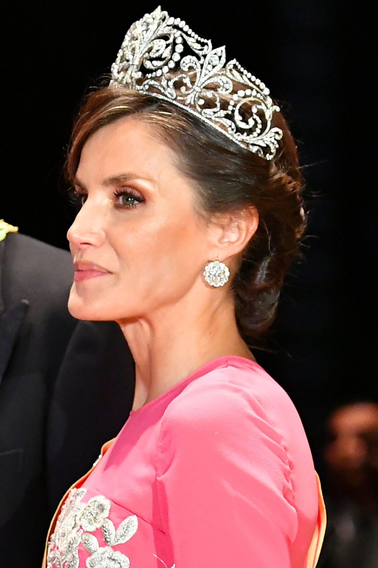 El bolso de mano, del mismo color que el vestido y también de Carolina Herrera. Lo más llamativo del estilismo fue la tiara de flores de Lis, la más importante en el joyero real que está reservada para las grandes ocasiones.
