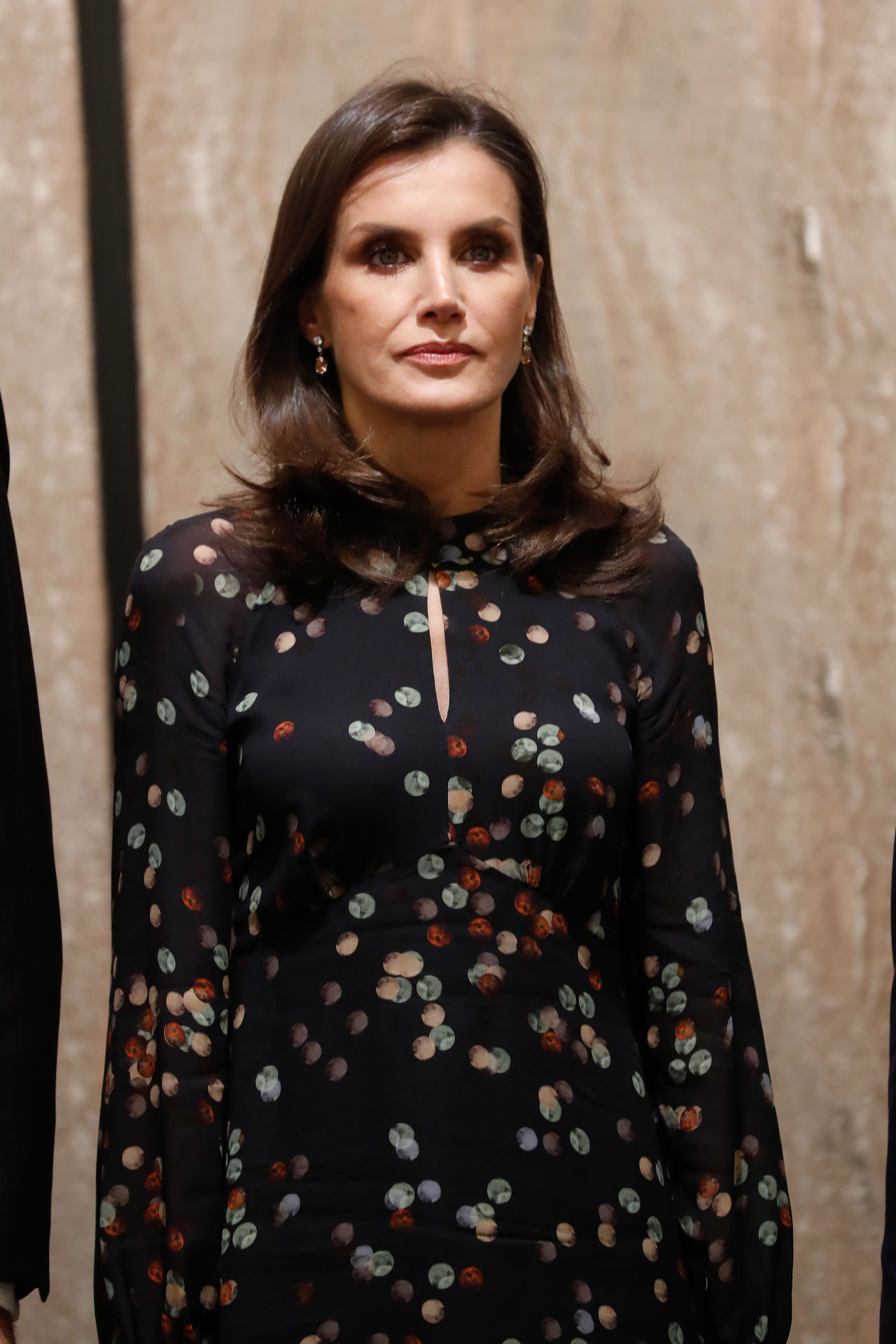 Para la ocasión la reina española lució en sus orejas sendos pendientes de esmeraldas y diamantes que pertenecen a su suegra, la reina Sofía.