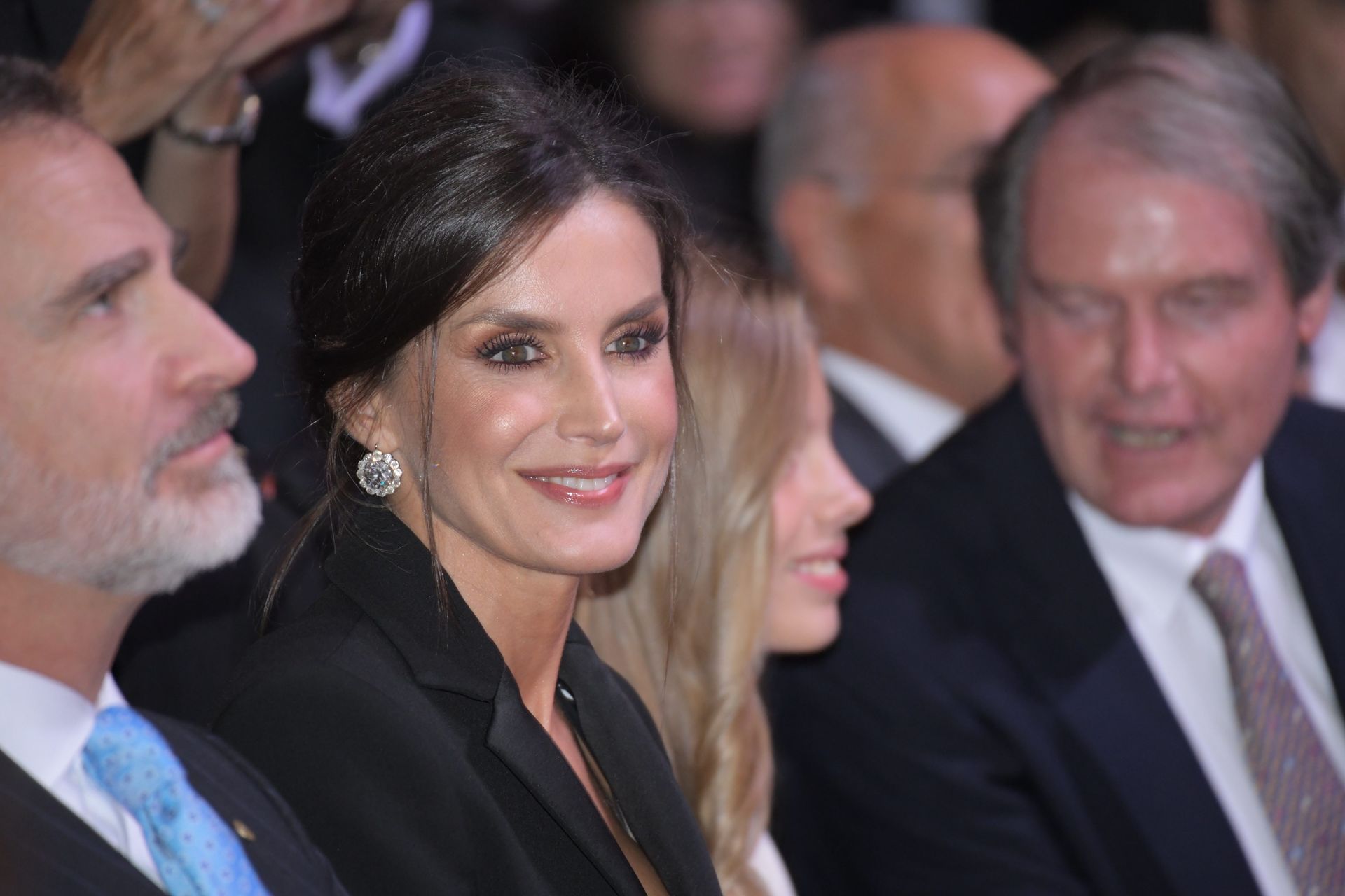 La reina Letizia, con llamativos pendientes y discreto maquillaje.