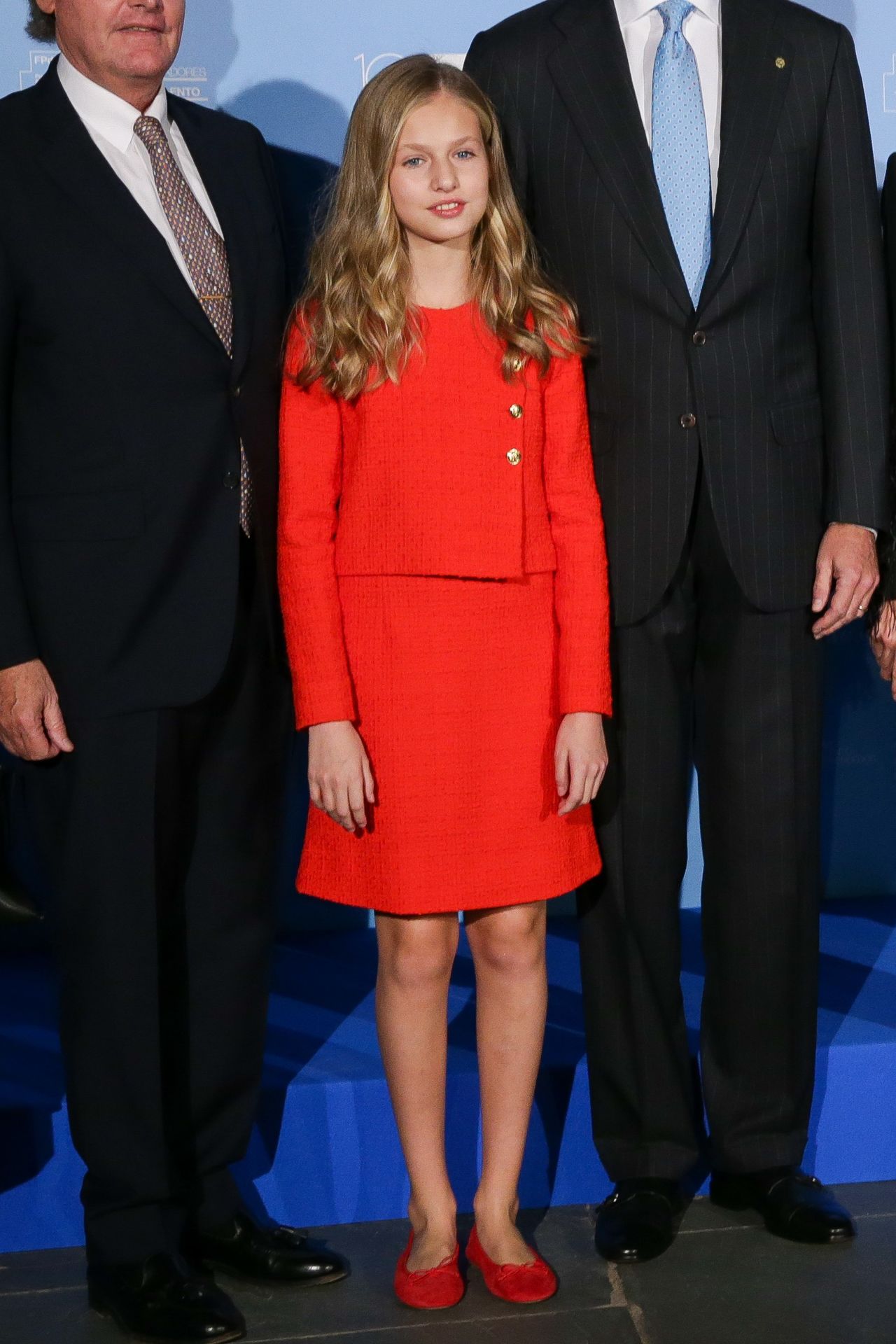 Leonor lució un bonito traje rojo de tweed con bailarinas a juego.