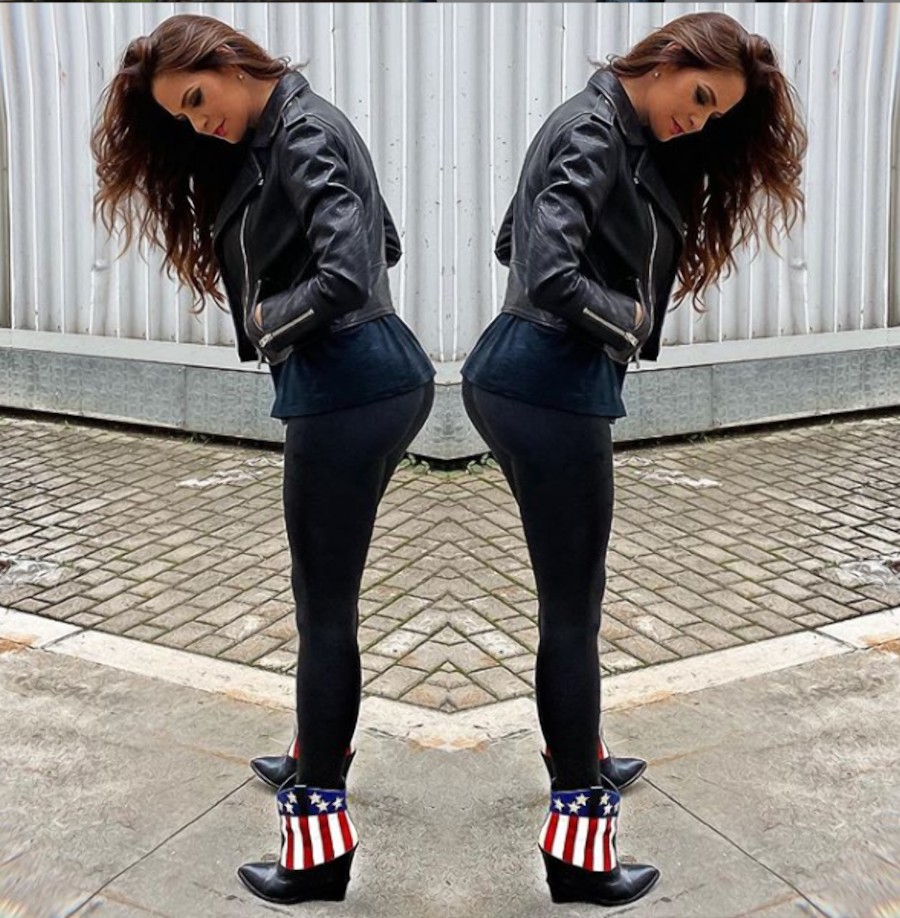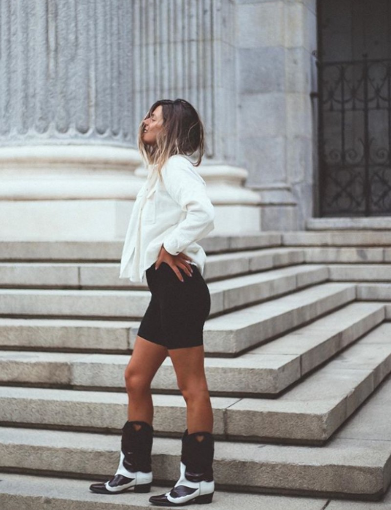 La presentadora se suma a la moda aunque con una versión más moderna en piel negra. La punta y el tacón conservan la esencia del lejano oeste.