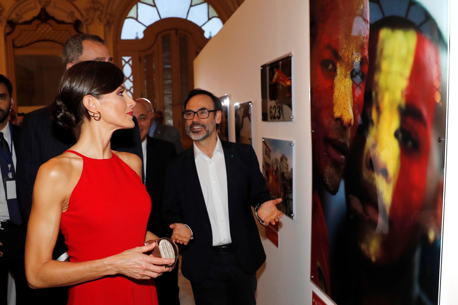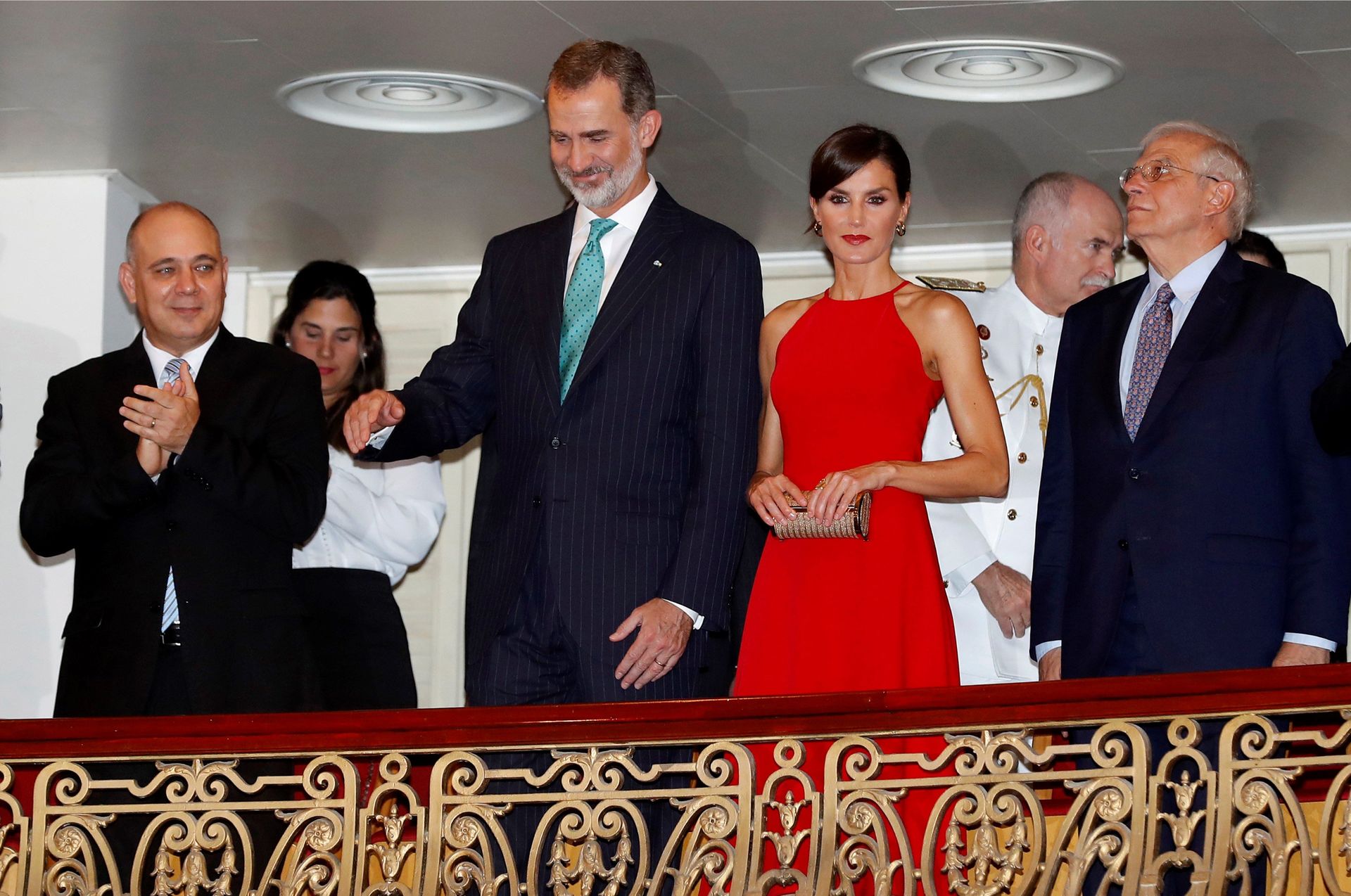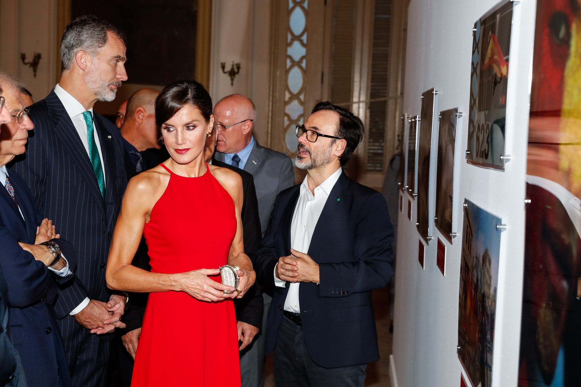 El martes, durante la visita a la exposición “España y Cuba: Contigo en la distancia”. Lo hizo con un sobrio y elegante vestido rojo complementado con un bolso de Carolina Herrera.