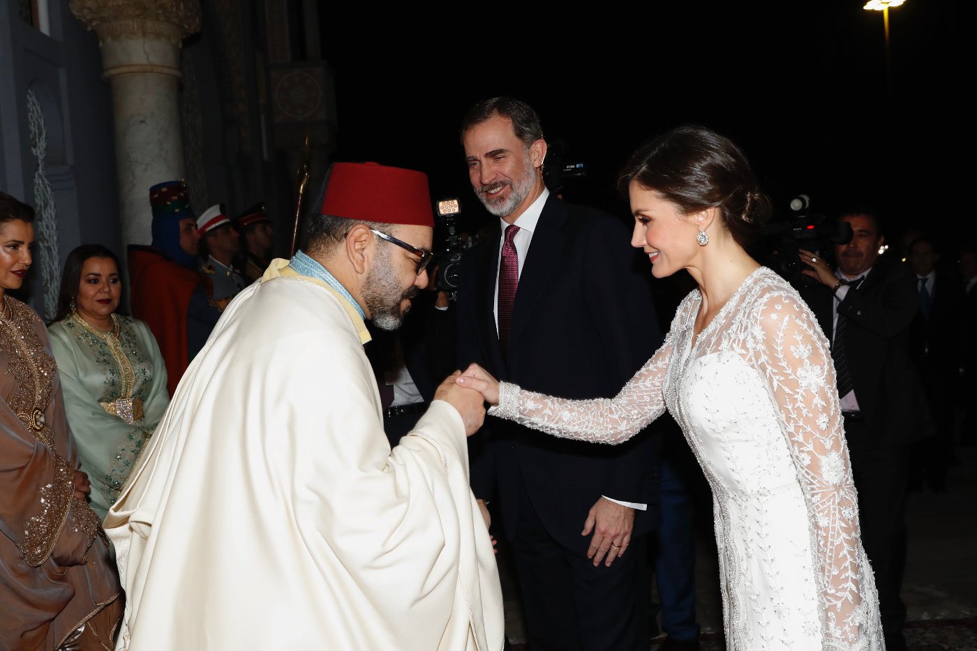 En febrero los Reyes volaban hasta Marruecos en un Viaje de Estado en el que Doña Letizia acaparaba todas las miradas. Durante una cena de gala ofrecida por Mohamed VI, la Reina sorprendía todos estrenando un impresionante vestido firmado por Felipe Varela. Un look imponente con un vestido blanco impecable con un sobreabrigo a juego con bordados joya en color plata que combinaba con su clutch, también de Varela, y con sus sandalias de tiras de Magrit. Uno de sus estilismos más recordados de este año.