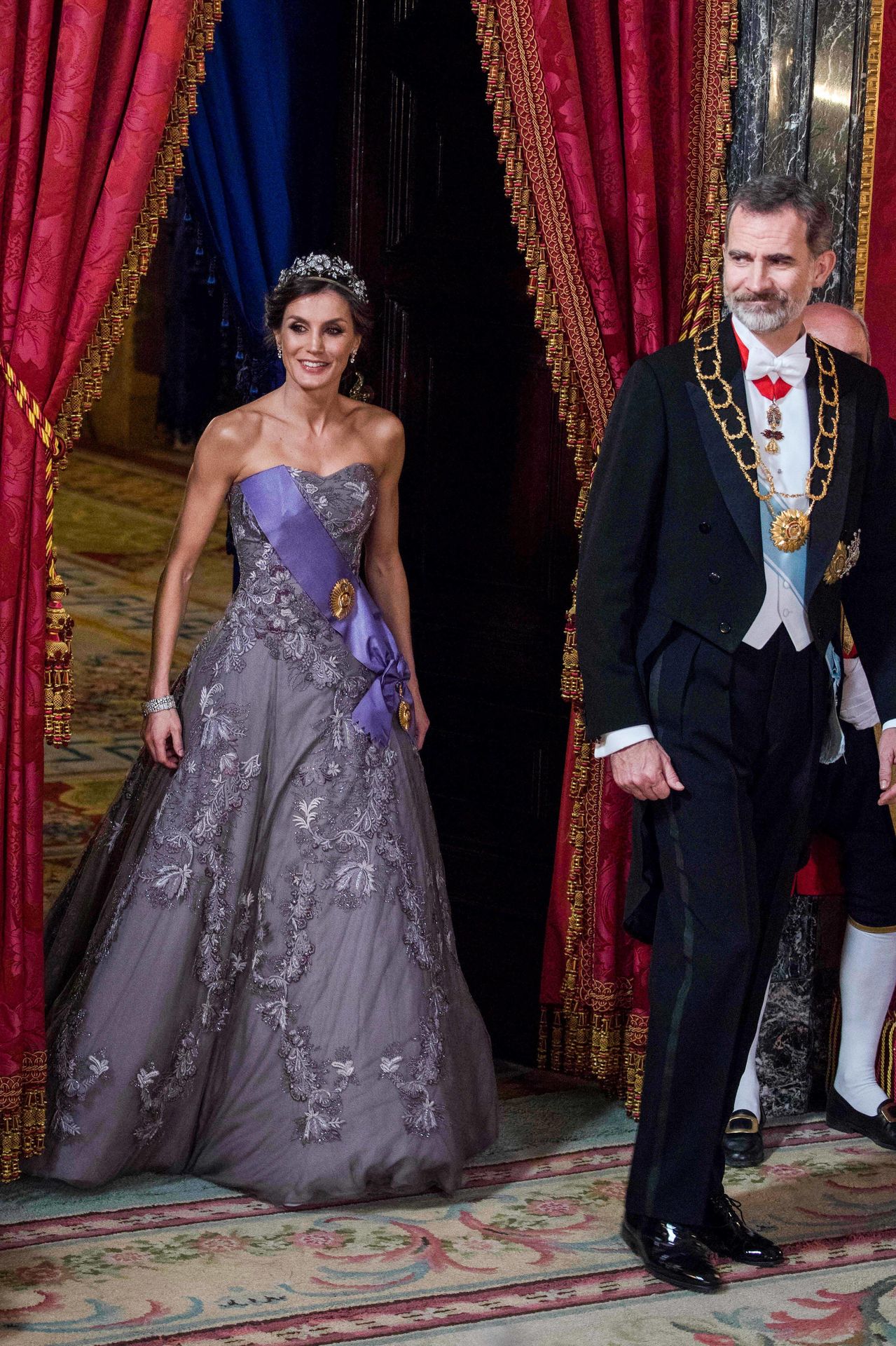 La Reina Letizia empezó el año por todo lo alto con un vestido de gala durante una recepción en el Palacio Real, en que pudimos verla con un escote palabra de honor y corte princesa con el que ponía el listón del 2019 muy alto.