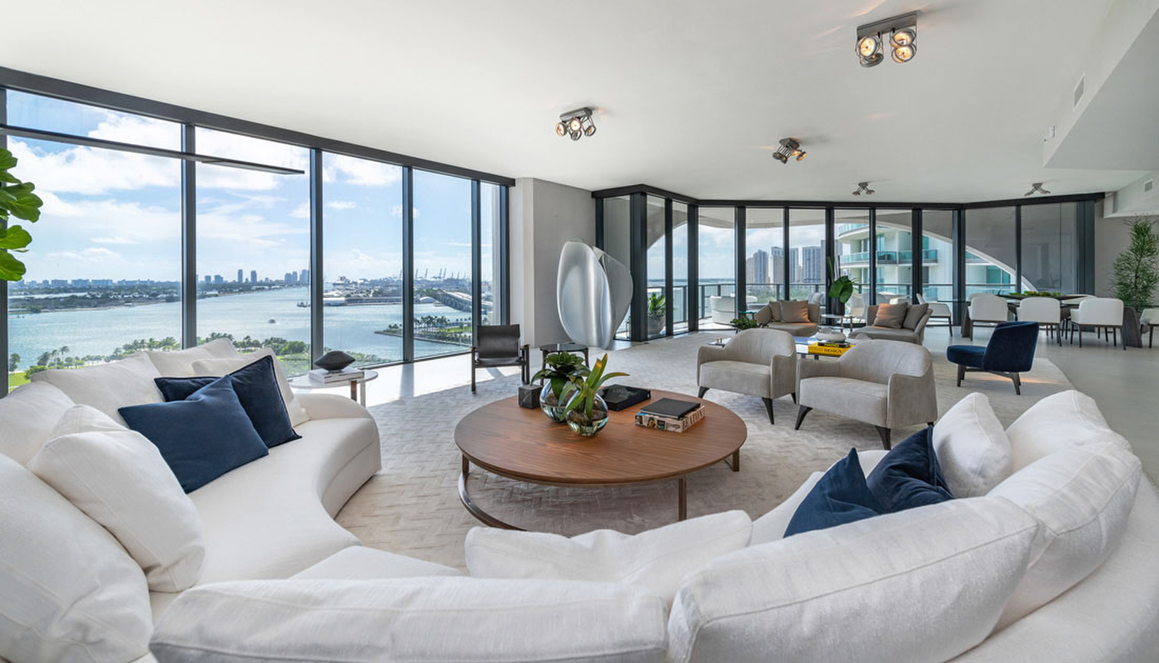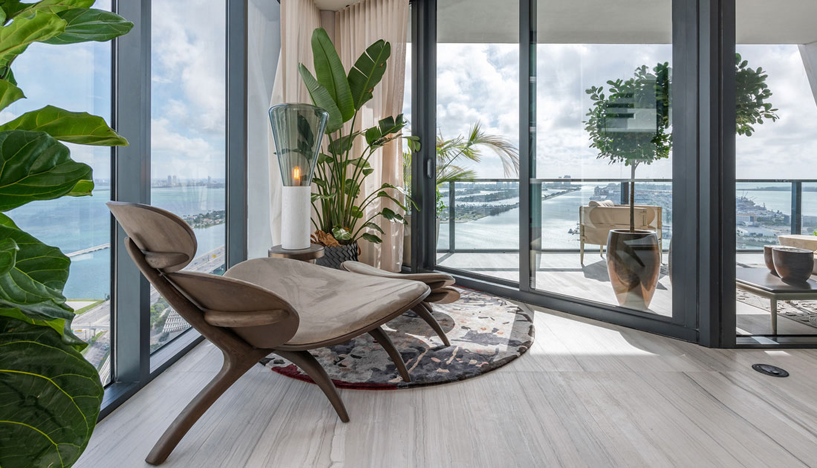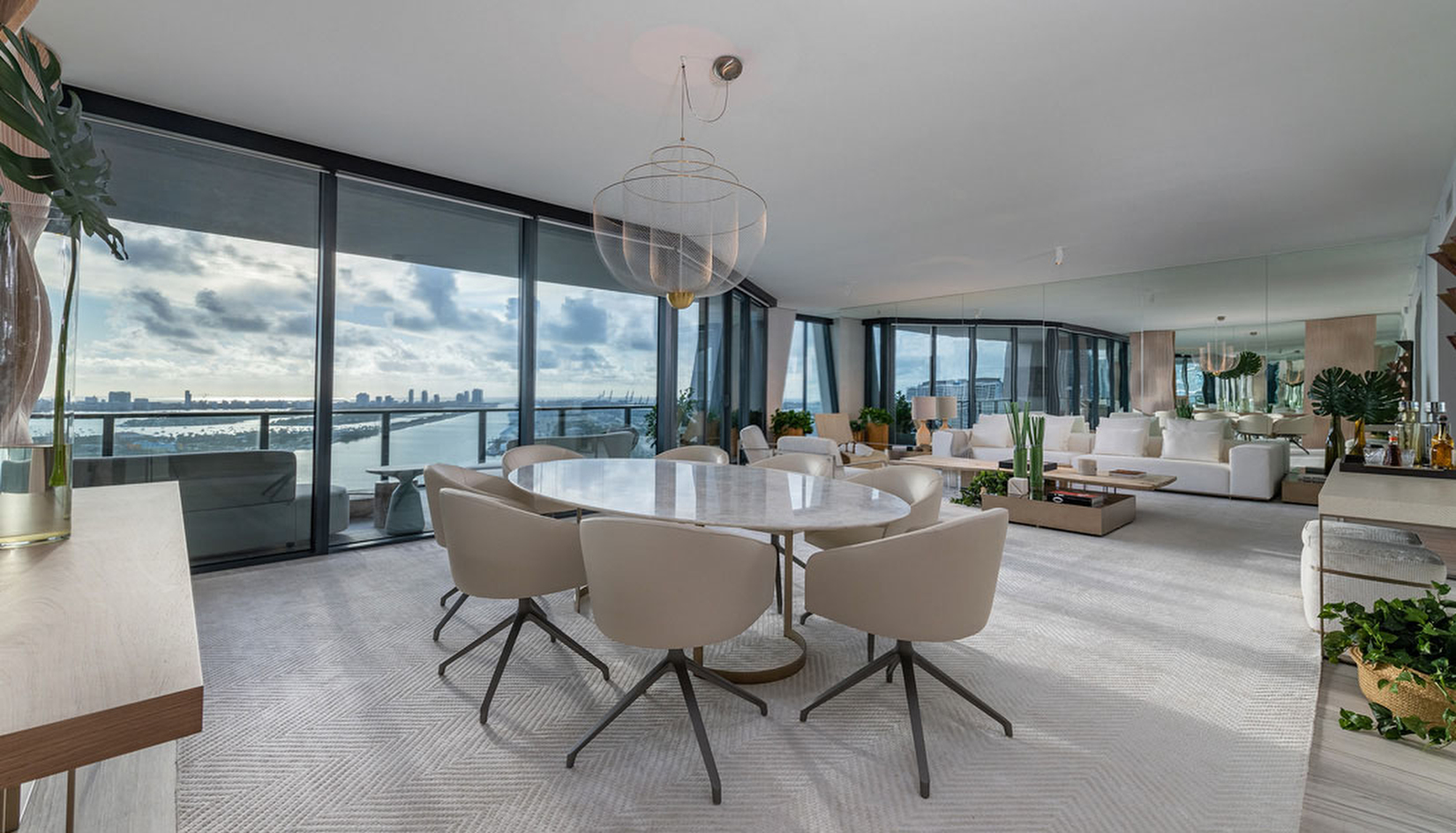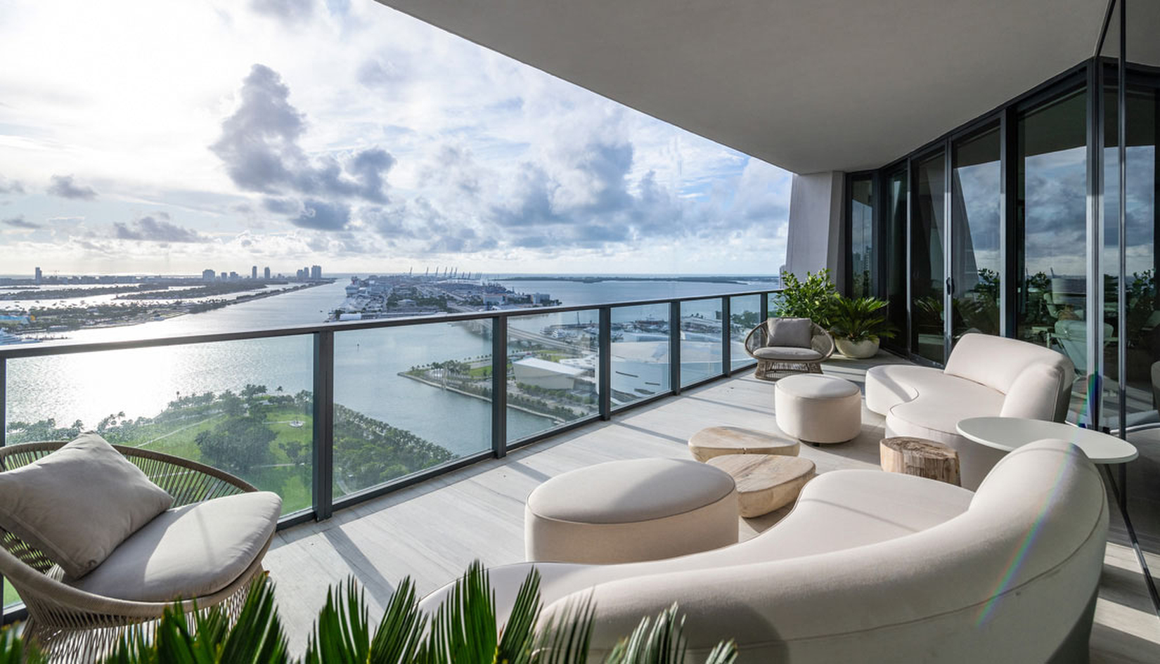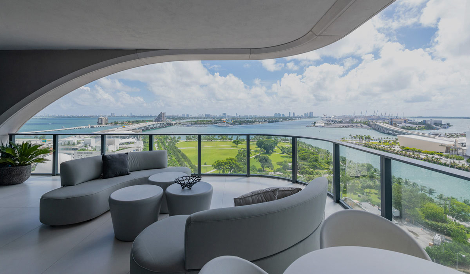 El edificio está ubicado frente al Museum Park y desde sus apartamentos se puede ver toda la costa de Miami: la bahía de Vizcaya y el océano Atlántico.
