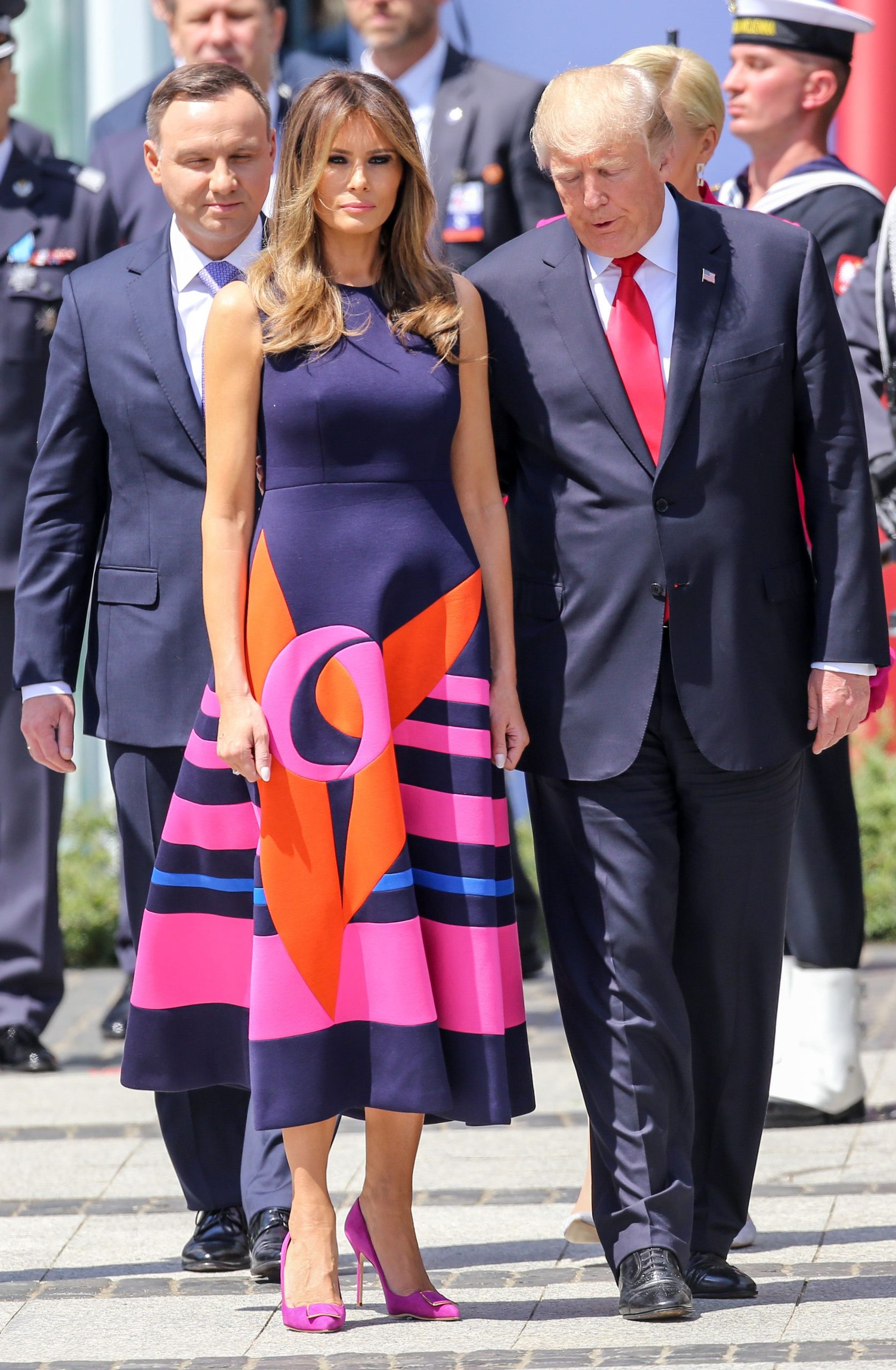 Tras su llegada a la Casa Blanca, Melania Trump demostró en numerosas apariciones su amor por la firma española. En julio de 2017, sorprendió por primera vez con un modelo de Delpozo durante su visita oficial a Polonia. Se trató de un vestido azul marino tres cuartos de neopreno con un precio de venta al público de 2.500 euros.
