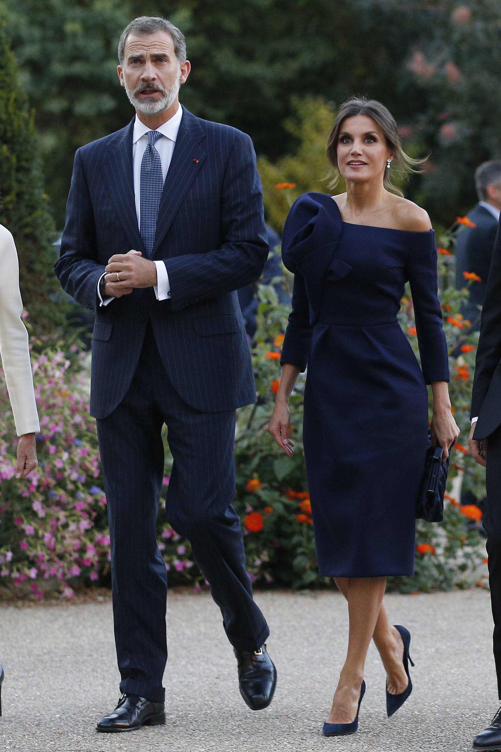 El impecable vestido azul noche de Delpozo que doña Letizia estrenó durante la entrega de unos premios deportivos es, sin duda, el más elogiado: silueta lápiz, manga francesa y cuello barco adornado con una voluminosa flor. Lo volvió a utilizar durante una visita de Estado de los Reyes a París, donde acaparó todas las miradas una vez más.