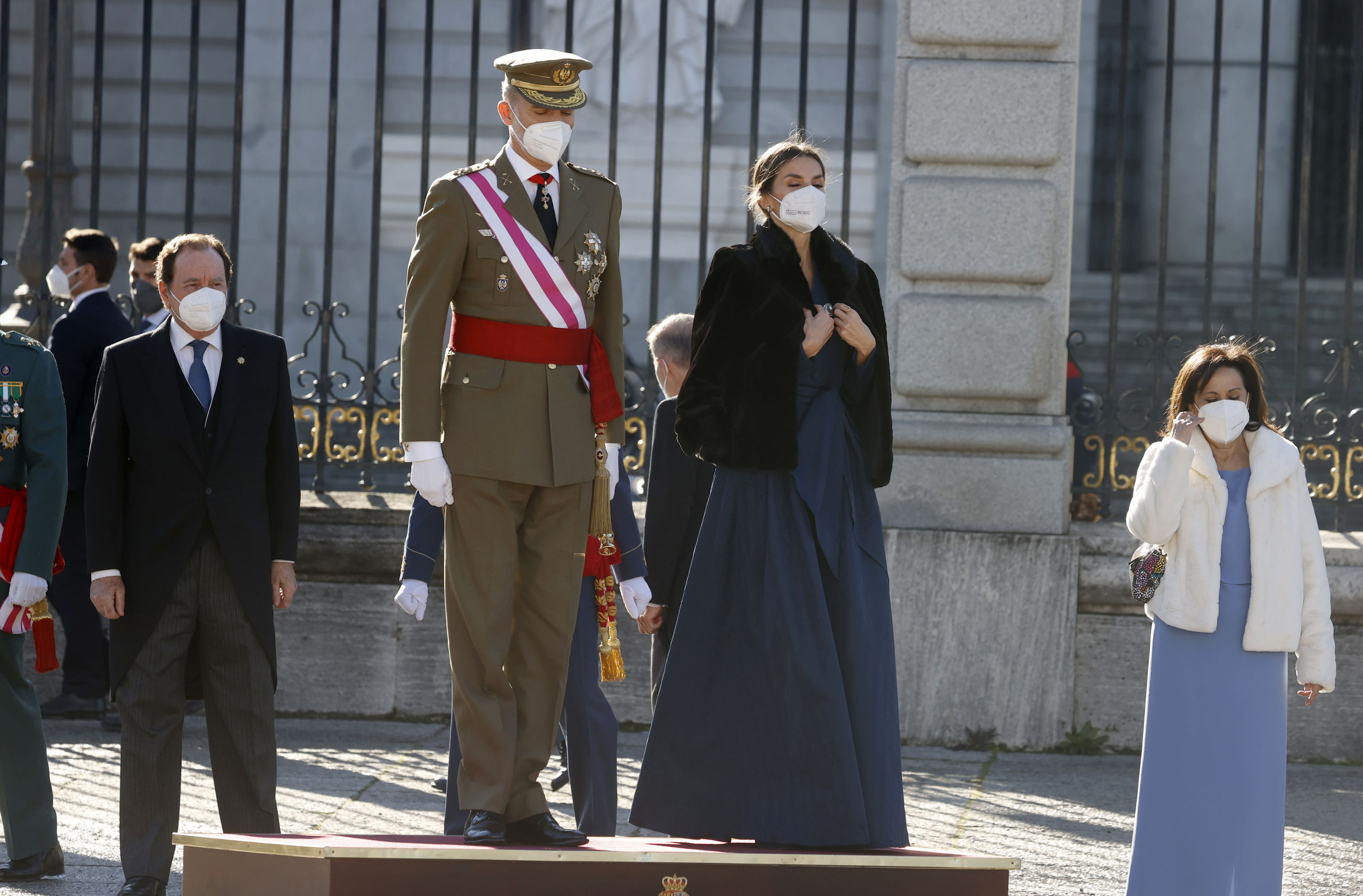 El rey Felipe VI, acompañador de doña Letizia, ha presidido este jueves en el Palacio Real de Madrid una nueva edición de la Pascua Militar, una celebración con casi dos siglos y medio de historia y que abre oficialmente el año castrense.